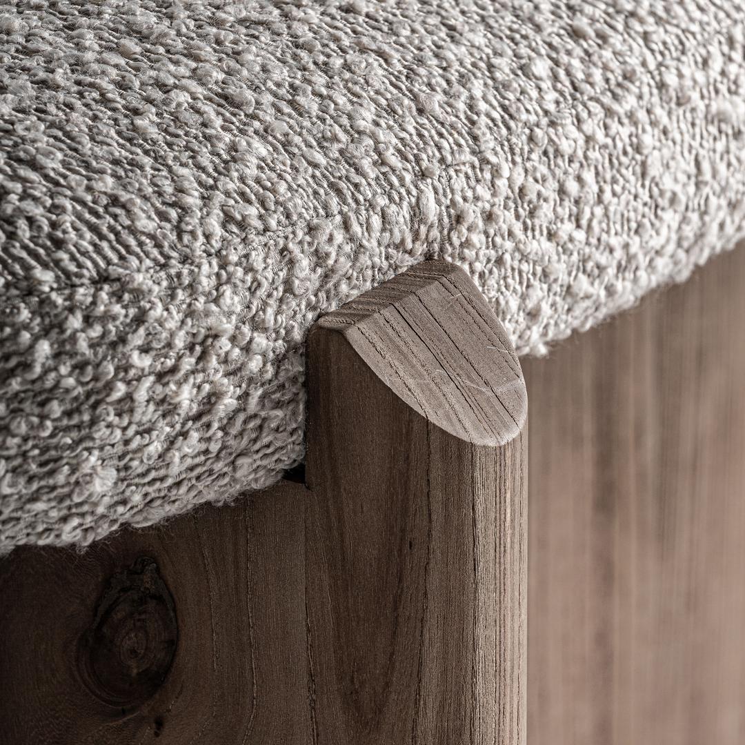 Современная банкетка Изготовлена из коричневого дуба в сочетании с бежевым полиэстером.