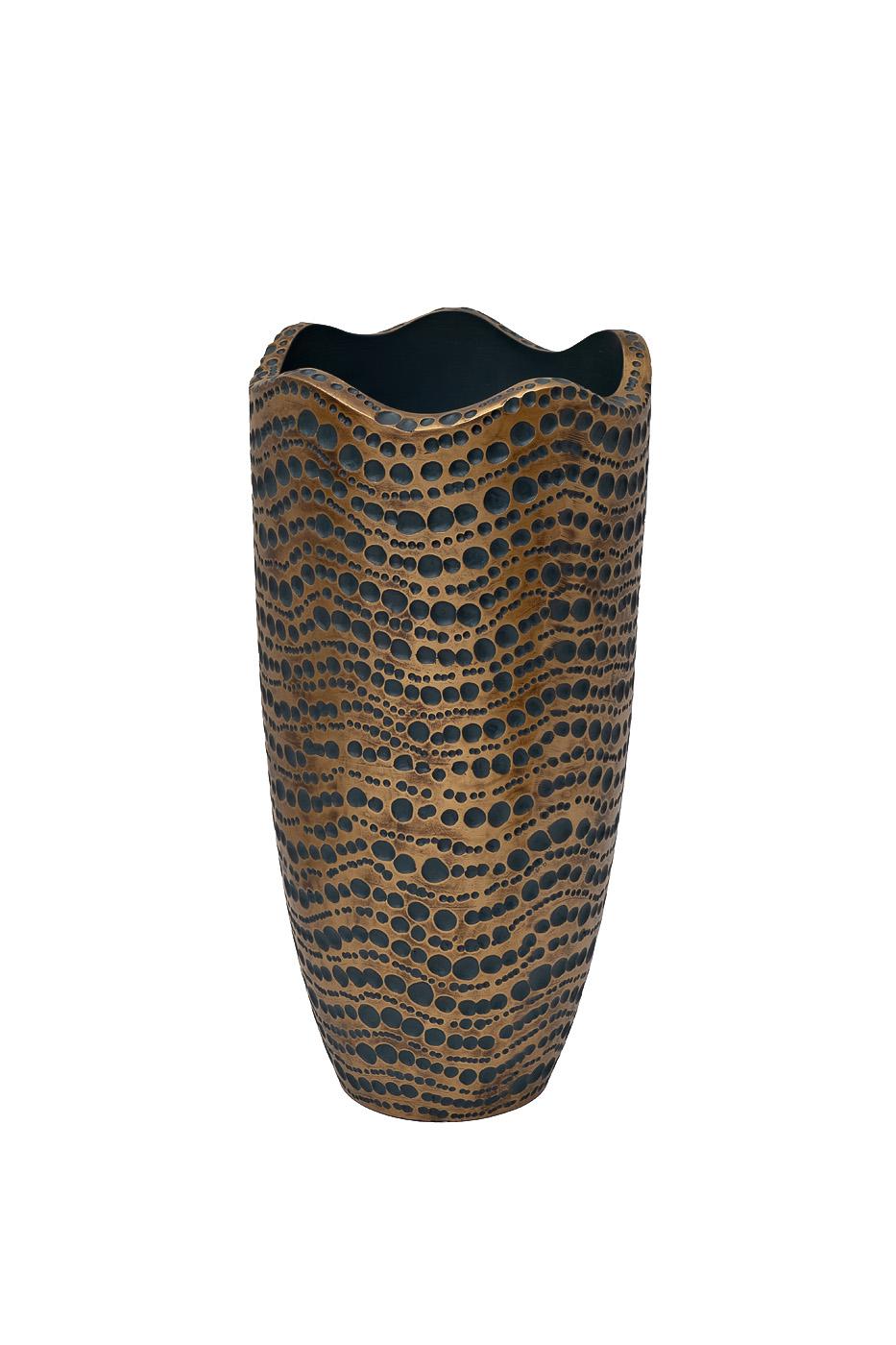 description-full - Декоративное кашпо в сине-золотой расцветке объединяет в себе креативность, стиль и изящество. Кашпо имеет непревзойденный внешний вид. Золотистая поверхность с россыпью синих вкраплений и волнистый срез придают оригинальности изделию. Исполнение в модернистическом стиле позволяет использовать напольное кашпо в современных интерьерах для декорирования гостиных, спален, кабинетов и столовых комнат. На сайте Garda Decor вы найдете большое разнообразие красивых и уникальных кашпо.