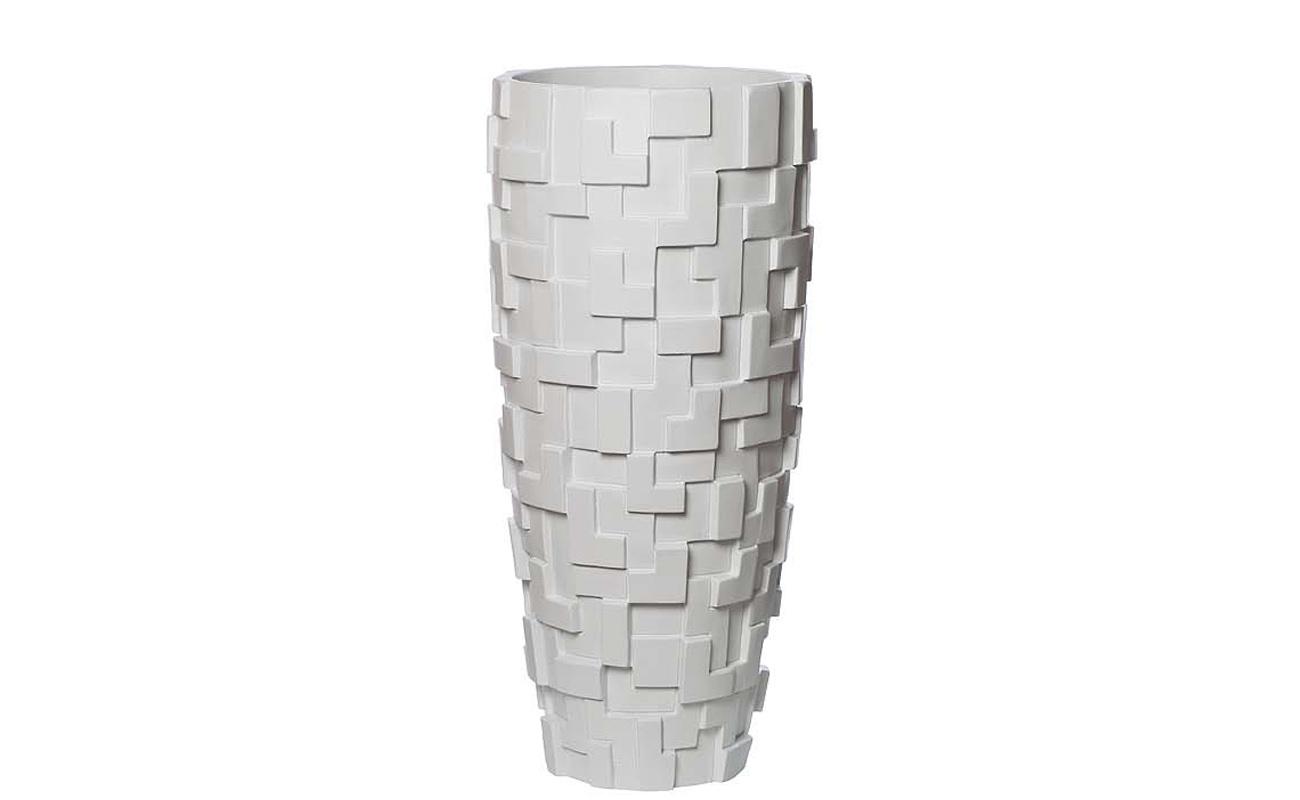 description-full - Современное белое кашпо выглядит стильно и оригинально. Оно представляет собой декоративный сосуд с глубоким дном, который можно разместить на полу у дивана, кровати, консоли или комода, чтобы дополнить интерьерную композицию. Предназначено для размещения различных типов комнатных растений в горшках или композиций из искусственных растений. Интересный геометричный узор в отделке кашпо обращает на себя внимание. Такая деталь в обстановке способна подчеркнуть эстетику в интерьере и особенный вкус владельцев дома.