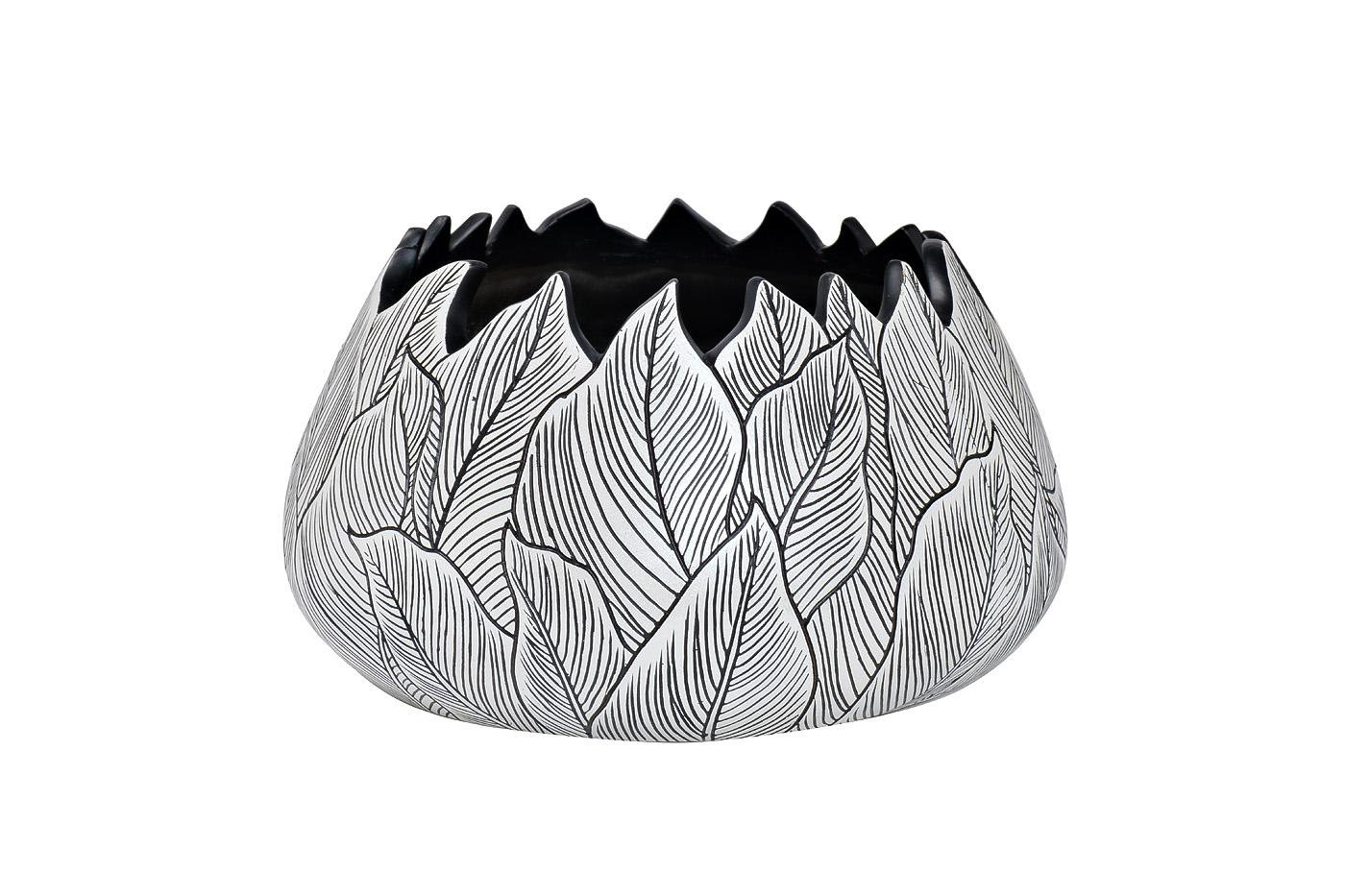 Кашпо Garda Decor ZS2001-11 Кашпо низкое черно-белое "Листья" d29*16см арт. ZS2001-11