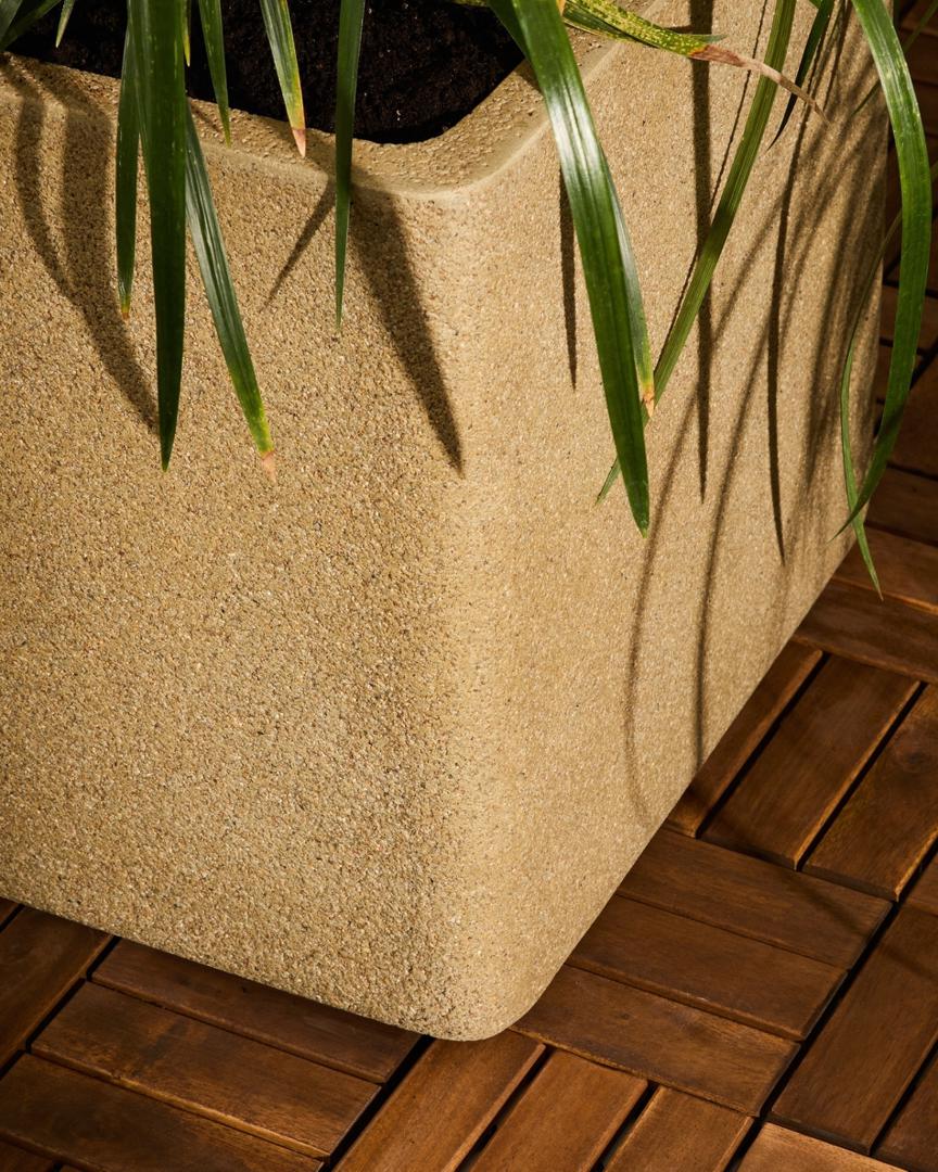 Этот кашпо с простыми линиями и тёмной отделкой в совершенстве сочетает в себе стиль и функциональность. Его кубическая форма и минималистичный дизайн делают его универсальным предметом, который можно использовать как в помещении, так и на улице, добавляя современный и элегантный штрих в любое пространство. Изготовленное из полицемента — материала, состоящего из смолы и каменной пыли, — оно выглядит как камень, но при этом отличается высокой прочностью и лёгкостью, что делает его удобным в использовании и долговечным. Это кашпо, идеально подходящее для подчёркивания естественной красоты ваших растений, превращает любой уголок в изысканное и индивидуальное пространство.