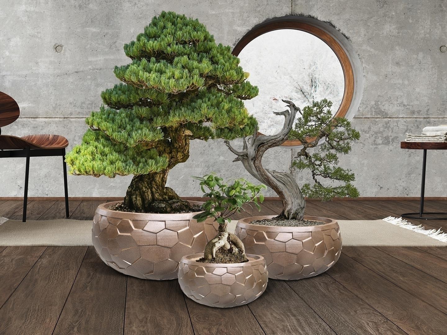 Кашпо Schuller Canela Набор из трех цветочных горшков бронзовый арт. 197498