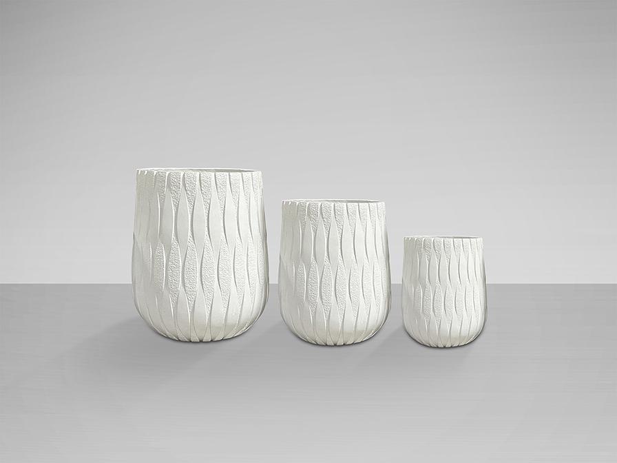 Набор из трех цветочных горшков из стекловолокна и смолы Fiberclay, отделка белая. Большой. Ø51х60см. Мед. Ø40х48см. Маленький Ø29x36см.