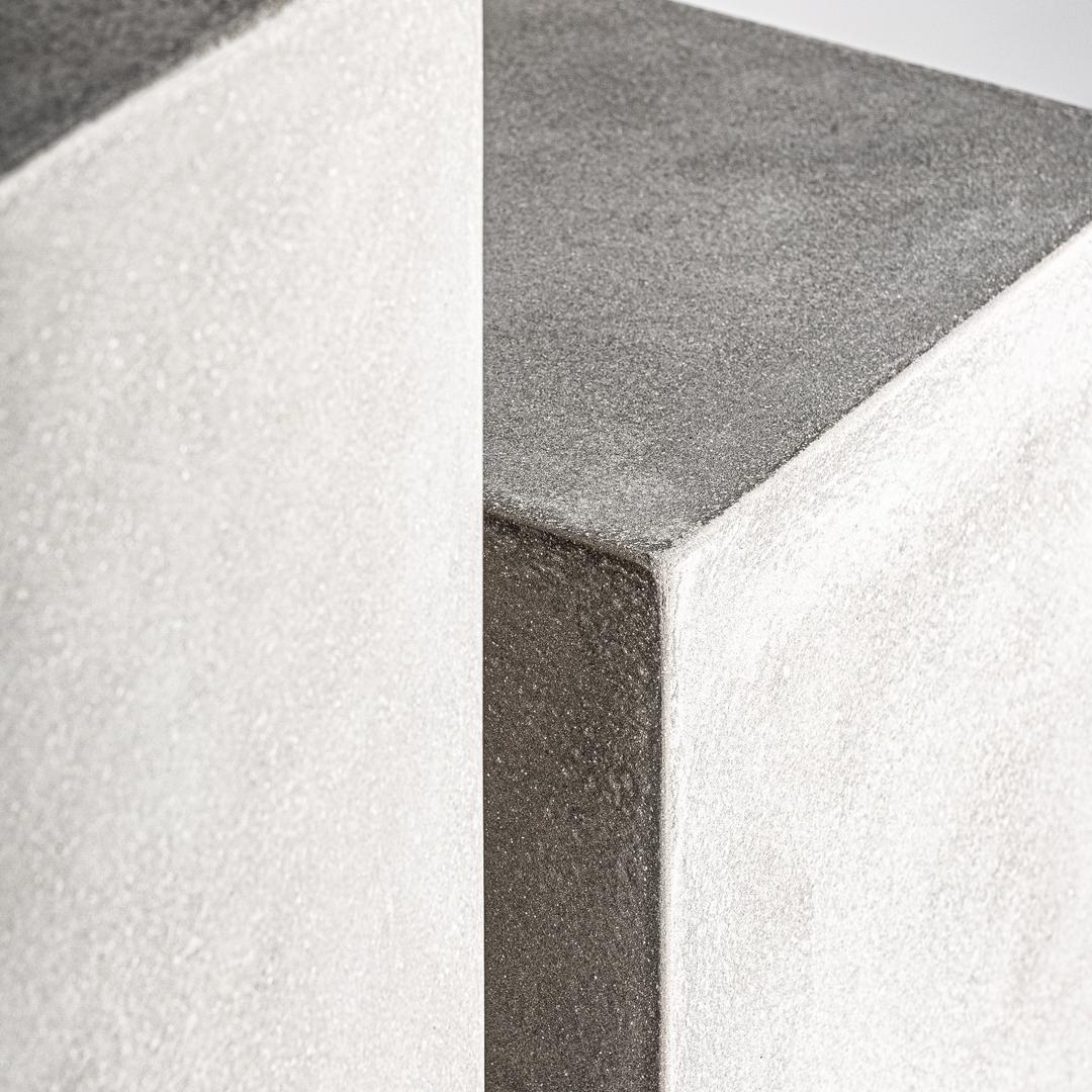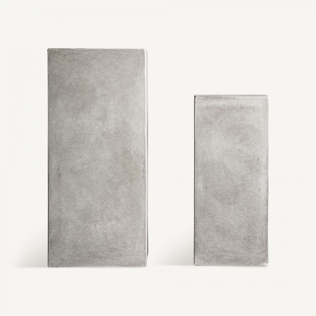 Набор из 2 кашпо в современном стиле, выполнен из серой терракоты. Большая ширина: 40 см, глубина: 40 см, высота: 90 см Маленькая ширина: 30 см, глубина: 30 см, высота: 70 см