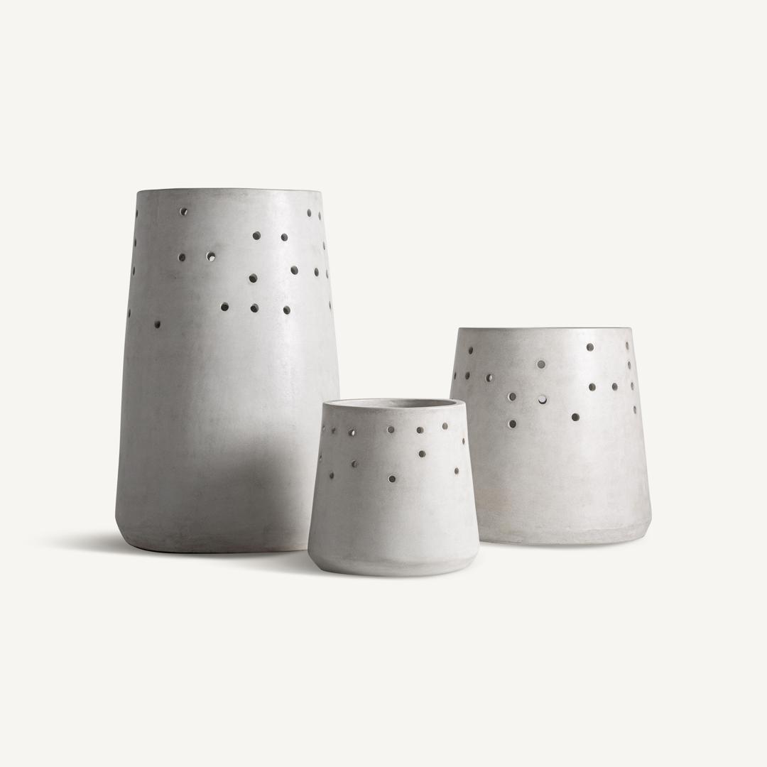 Кашпо JACQUARD J/3, разработанное Estudi{H}ac для VICALDESIGN, выполнено в современном стиле из цемента кремового цвета. Его лаконичный дизайн создает ощущение спокойствия и визуального равновесия. БОЛЬШОЙ : ширина 70 см, глубина 70 см, высота 98 см. СРЕДНИЙ : ширина 60 см, глубина 60 см, высота 60 см. МАЛЕНЬКИЙ : ширина 40 см, глубина 40 см, высота 40 см.