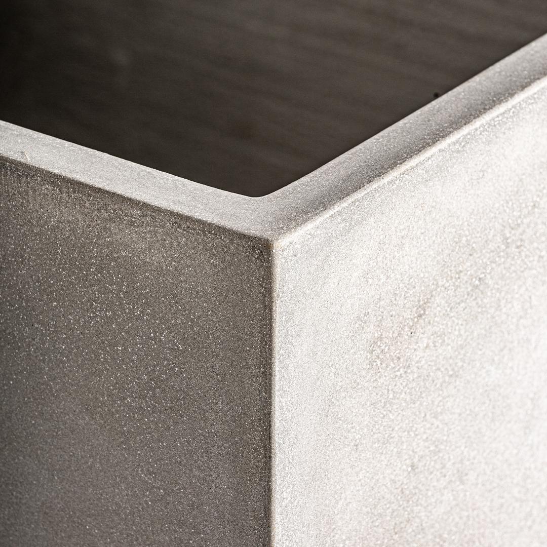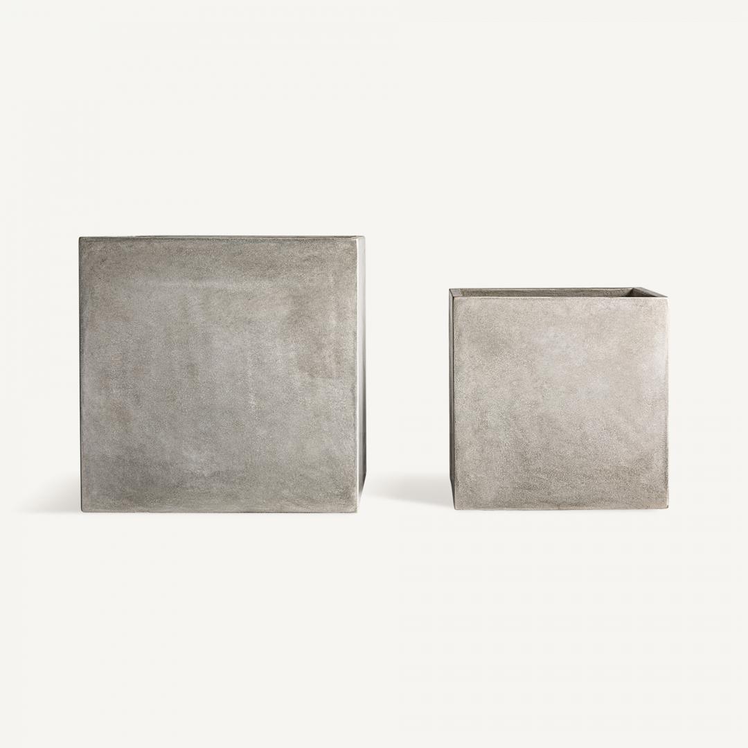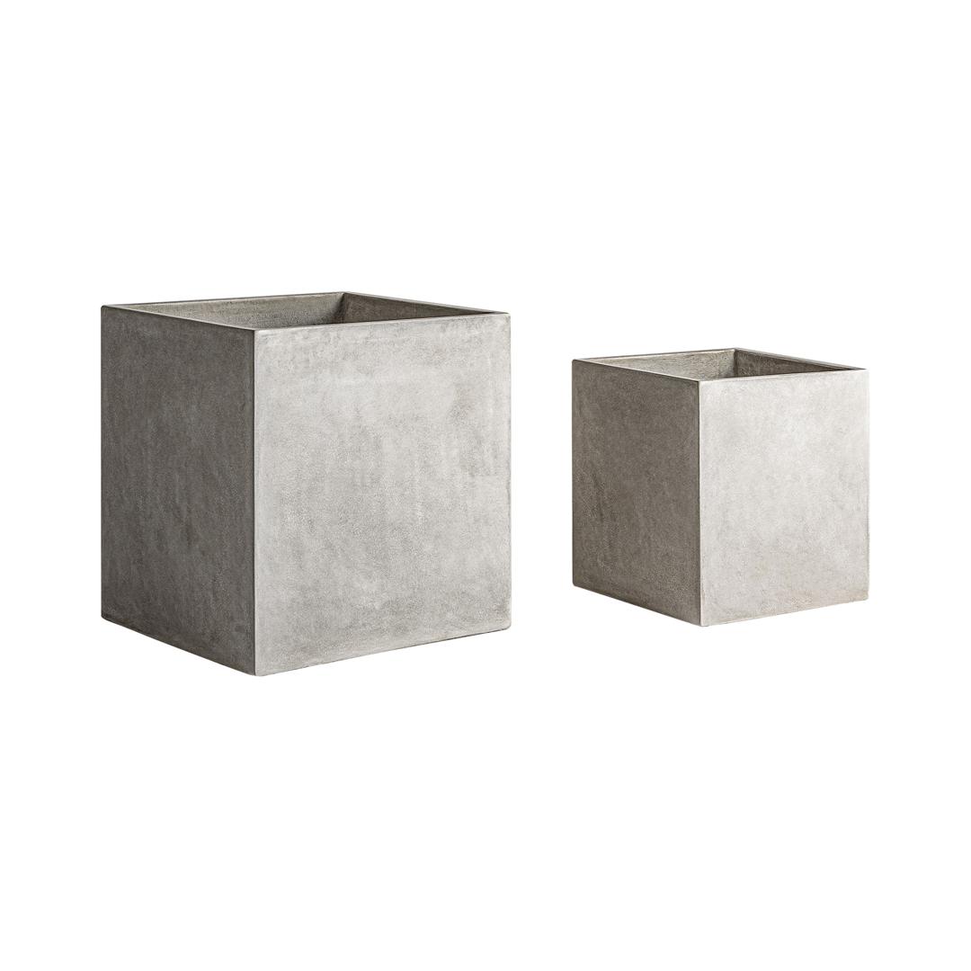 Набор из 2 кашпо в современном стиле, выполнен из серой терракоты. Большая ширина: 70 см, Глубина: 70 см, Высота: 70 см Маленькая ширина: 56 см, Глубина: 56 см, Высота: 56 см