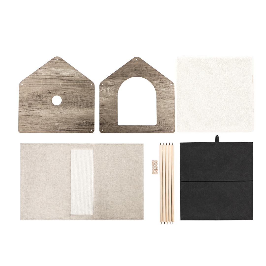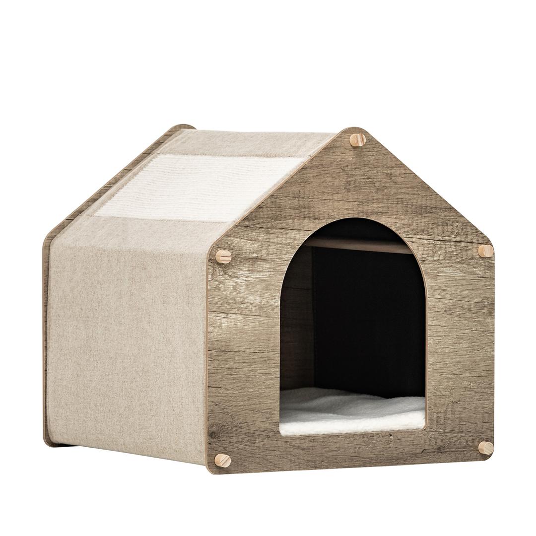Домик для питомцев изготовлен из МДФ – материала, который является экологически чистым и безопасным для животных. Все его детали проходят через дополнительный процесс шлифовки, в результате чего поверхность становится гладкой и безопасной, без острых углов. Особенностью домика является его прочная конструкция. Все его элементы соединяются между собой специальными креплениями, которые обеспечивают надежную фиксацию всех сторон домика. Это гарантирует, что домик не развалится и будет служить долго, даже при активном использовании животными. Снаружи домик обтянут тканью, которая также является экологически чистой и безопасной для животных. В данном случае используется искусственный лён и спанбонд. Эти материалы обладают высокой прочностью и устойчивостью к износу, что позволяет сохранить внешний вид домика на протяжении длительного времени.