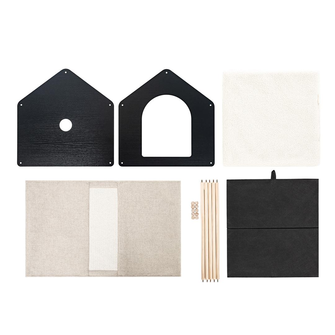Домик для питомцев изготовлен из МДФ – материала, который является экологически чистым и безопасным для животных. Все его детали проходят через дополнительный процесс шлифовки, в результате чего поверхность становится гладкой и безопасной, без острых углов. Особенностью домика является его прочная конструкция. Все его элементы соединяются между собой специальными креплениями, которые обеспечивают надежную фиксацию всех сторон домика. Это гарантирует, что домик не развалится и будет служить долго, даже при активном использовании животными. Снаружи домик обтянут тканью, которая также является экологически чистой и безопасной для животных. В данном случае используется искусственный лён и спанбонд. Эти материалы обладают высокой прочностью и устойчивостью к износу, что позволяет сохранить внешний вид домика на протяжении длительного времени.