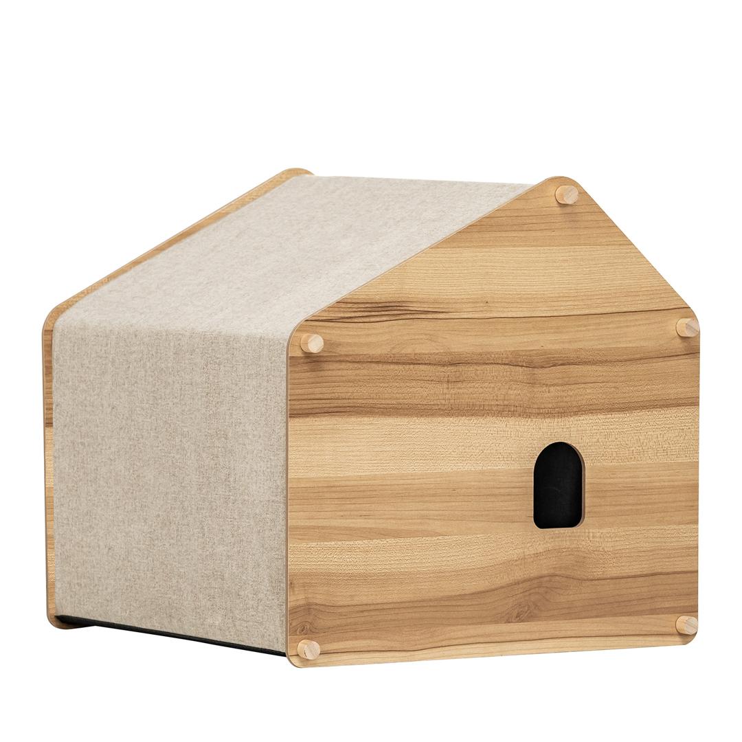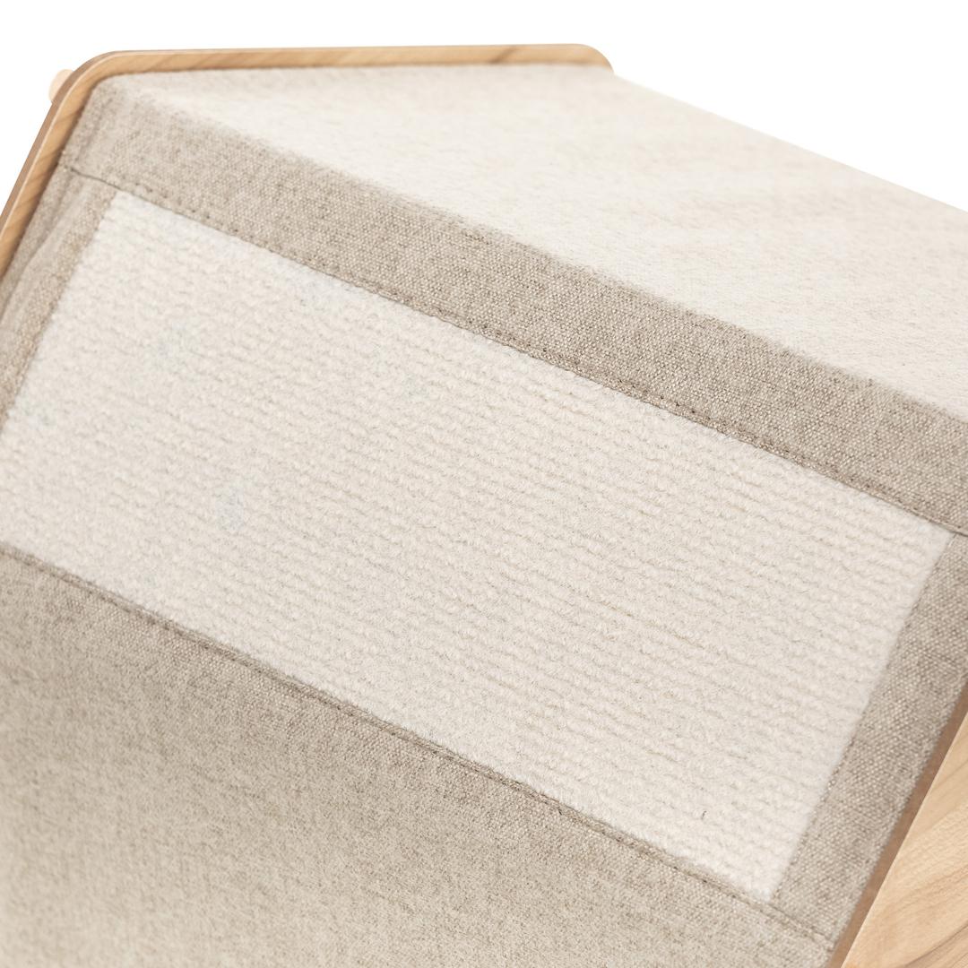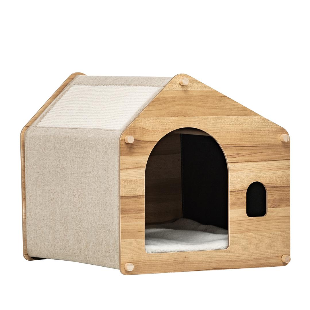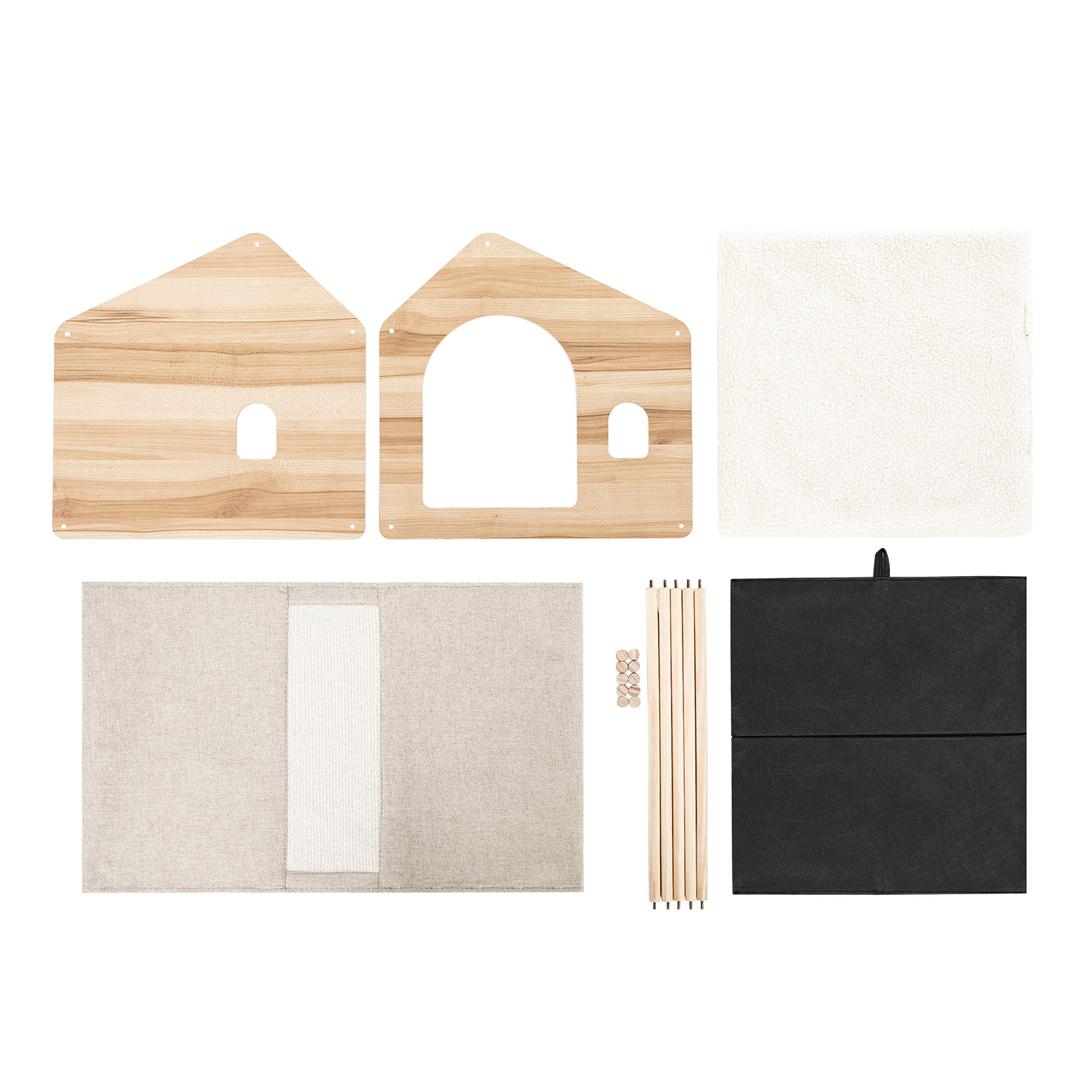 Домик для питомцев изготовлен из МДФ – материала, который является экологически чистым и безопасным для животных. Все его детали проходят через дополнительный процесс шлифовки, в результате чего поверхность становится гладкой и безопасной, без острых углов. Особенностью домика является его прочная конструкция. Все его элементы соединяются между собой специальными креплениями, которые обеспечивают надежную фиксацию всех сторон домика. Это гарантирует, что домик не развалится и будет служить долго, даже при активном использовании животными. Снаружи домик обтянут тканью, которая также является экологически чистой и безопасной для животных. В данном случае используется искусственный лён и спанбонд. Эти материалы обладают высокой прочностью и устойчивостью к износу, что позволяет сохранить внешний вид домика на протяжении длительного времени.