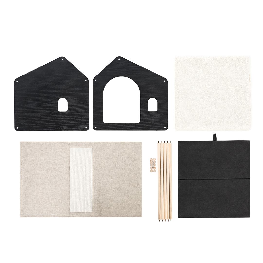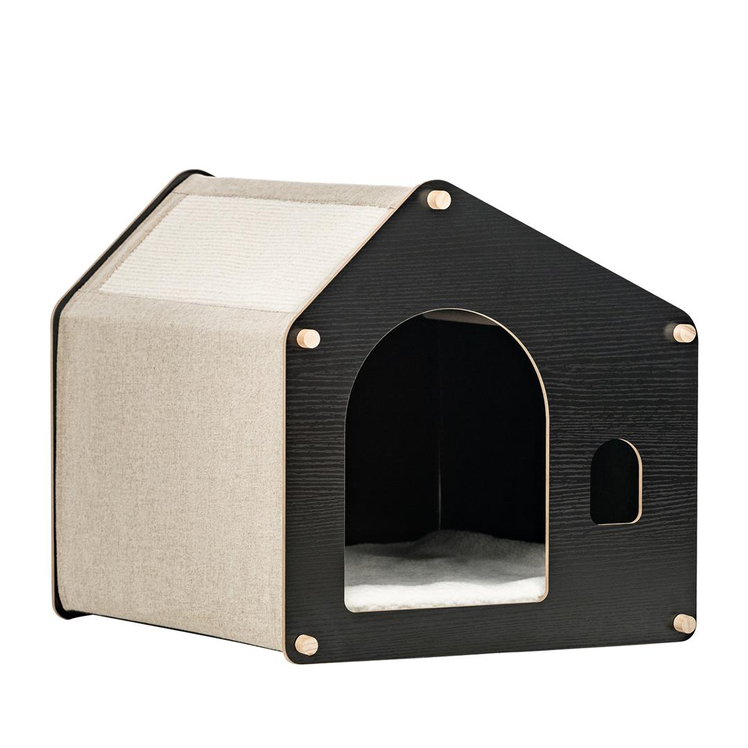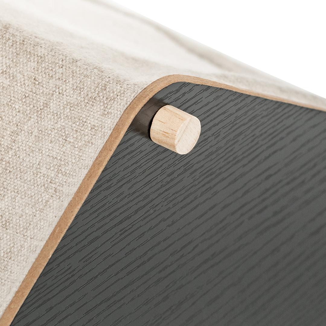 Домик для питомцев изготовлен из МДФ – материала, который является экологически чистым и безопасным для животных. Все его детали проходят через дополнительный процесс шлифовки, в результате чего поверхность становится гладкой и безопасной, без острых углов. Особенностью домика является его прочная конструкция. Все его элементы соединяются между собой специальными креплениями, которые обеспечивают надежную фиксацию всех сторон домика. Это гарантирует, что домик не развалится и будет служить долго, даже при активном использовании животными. Снаружи домик обтянут тканью, которая также является экологически чистой и безопасной для животных. В данном случае используется искусственный лён и спанбонд. Эти материалы обладают высокой прочностью и устойчивостью к износу, что позволяет сохранить внешний вид домика на протяжении длительного времени.