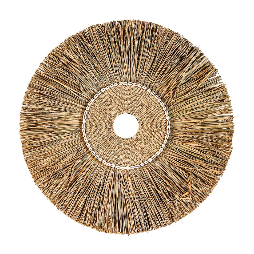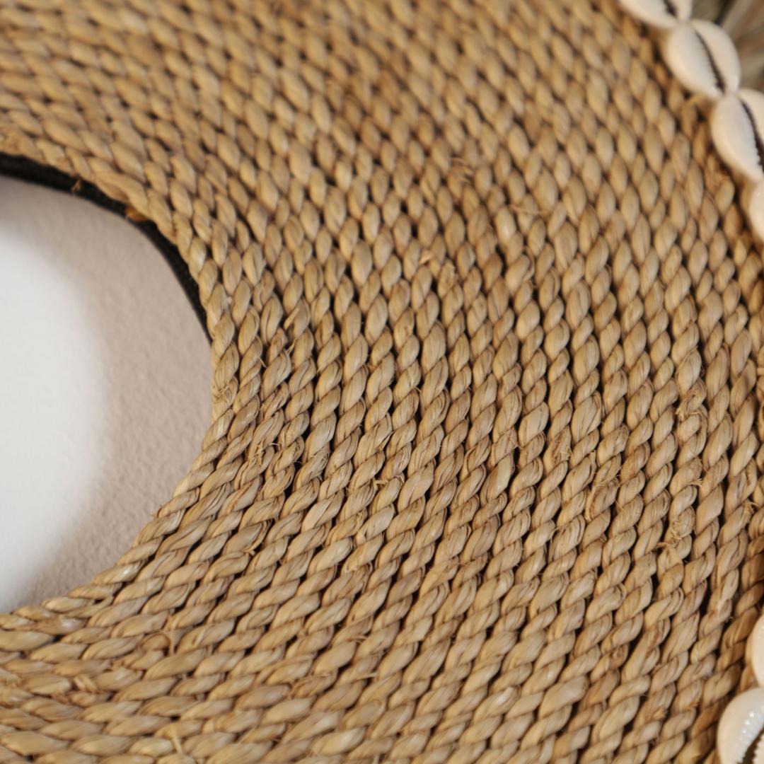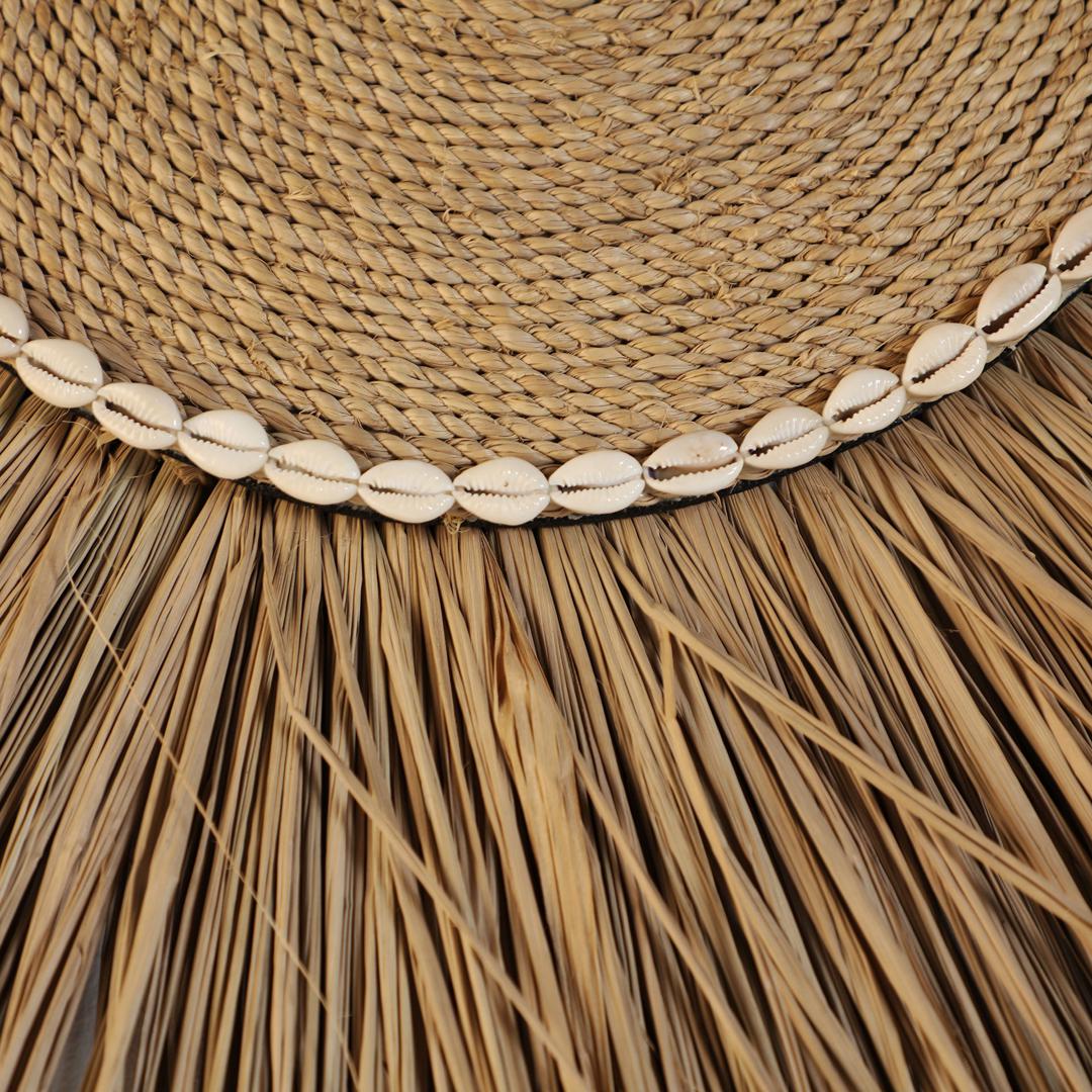 Декоративное панно в стиле бохо, выполнено из коричневой рафии.