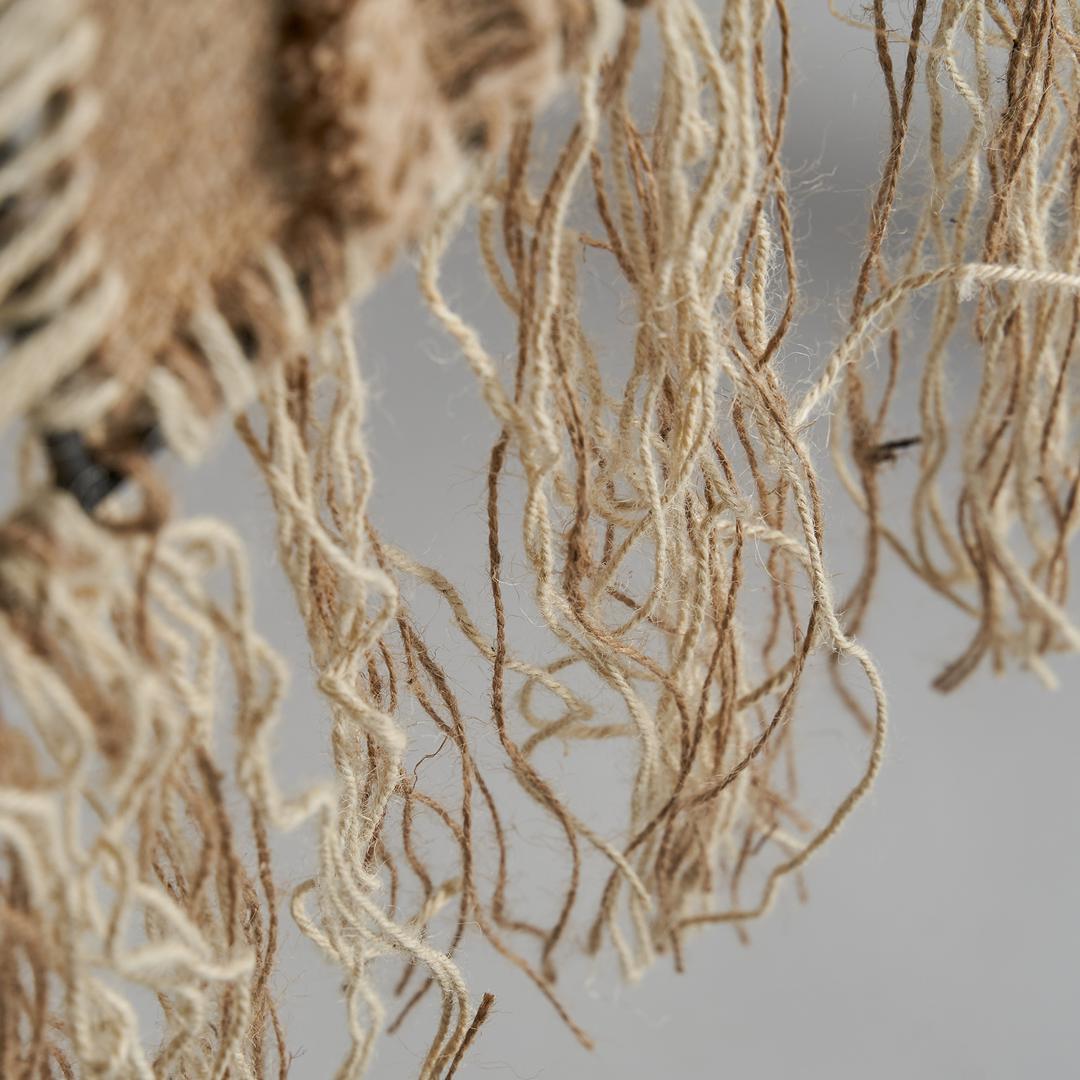 Настенное искусство бежевого цвета, винтажный стиль. Изготовлен из джута в сочетании с натуральным волокном и железом. Ширина: 60 см, Глубина: 2 см, Высота: 75 см.