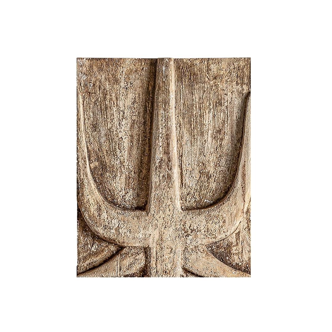 Декоративная панель в этническом стиле, выполненная из бежевого дерева суар с состаренной отделкой.