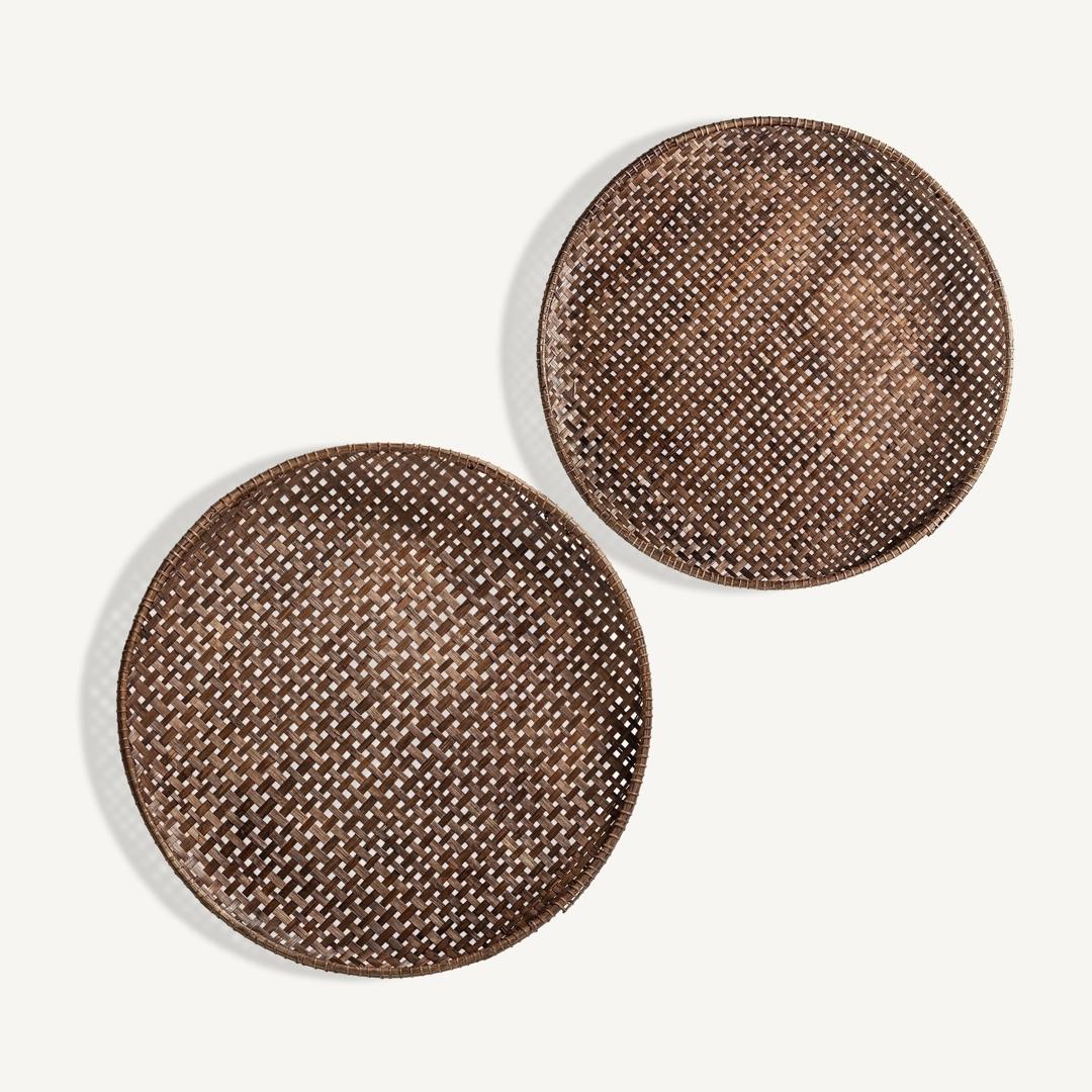 Декоративная тарелка в стиле Boho j/2, изготовленная из коричневого бамбука. Большая ширина: 90 см, глубина: 90 см, высота: 6 см МаленькийШирина: 80 см, Глубина: 80 см, Высота: 5 см