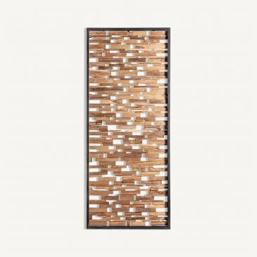 Настенное искусство, черный/натуральный цвет, колониальный стиль. Изготовлен из тикового дерева. Ширина: 240 см, Глубина: 6 см, Высота: 100 см.