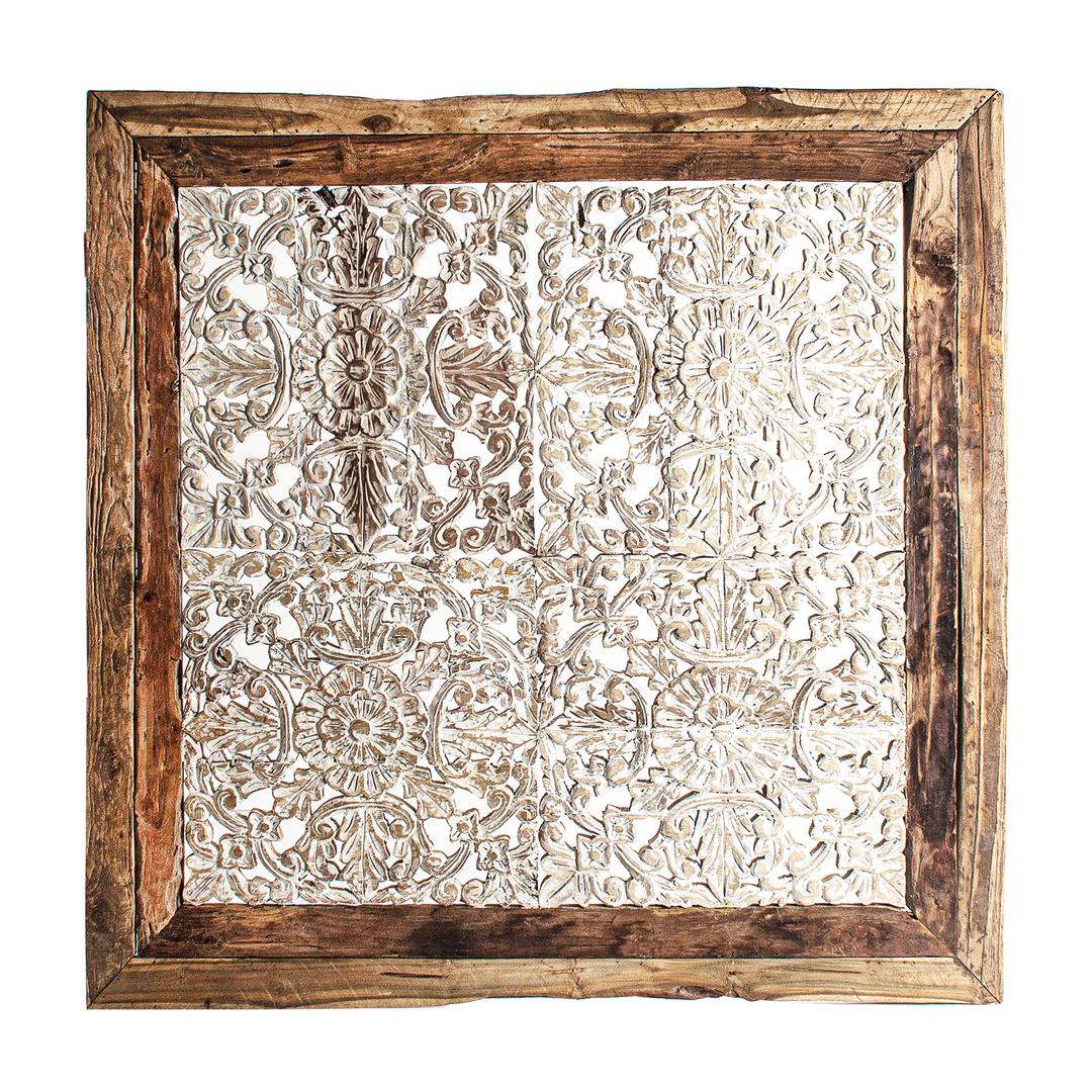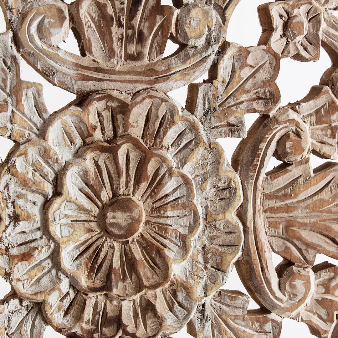Декоративное панно TASKENT, цвет состаренный белый/натуральный, в этническом стиле. Изготовлен из тропического дерева.