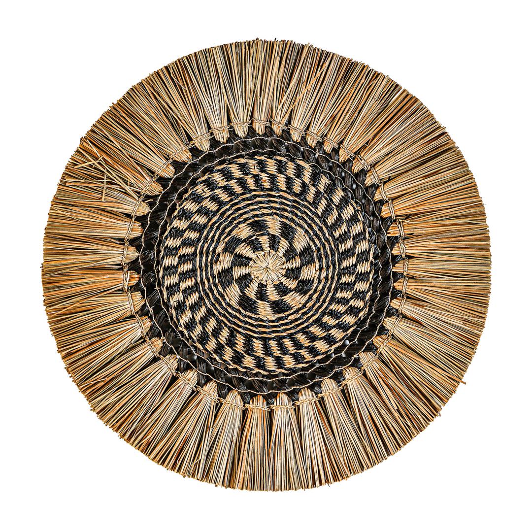 Декоративное панно в стиле бохо, выполнено из коричневой рафии.