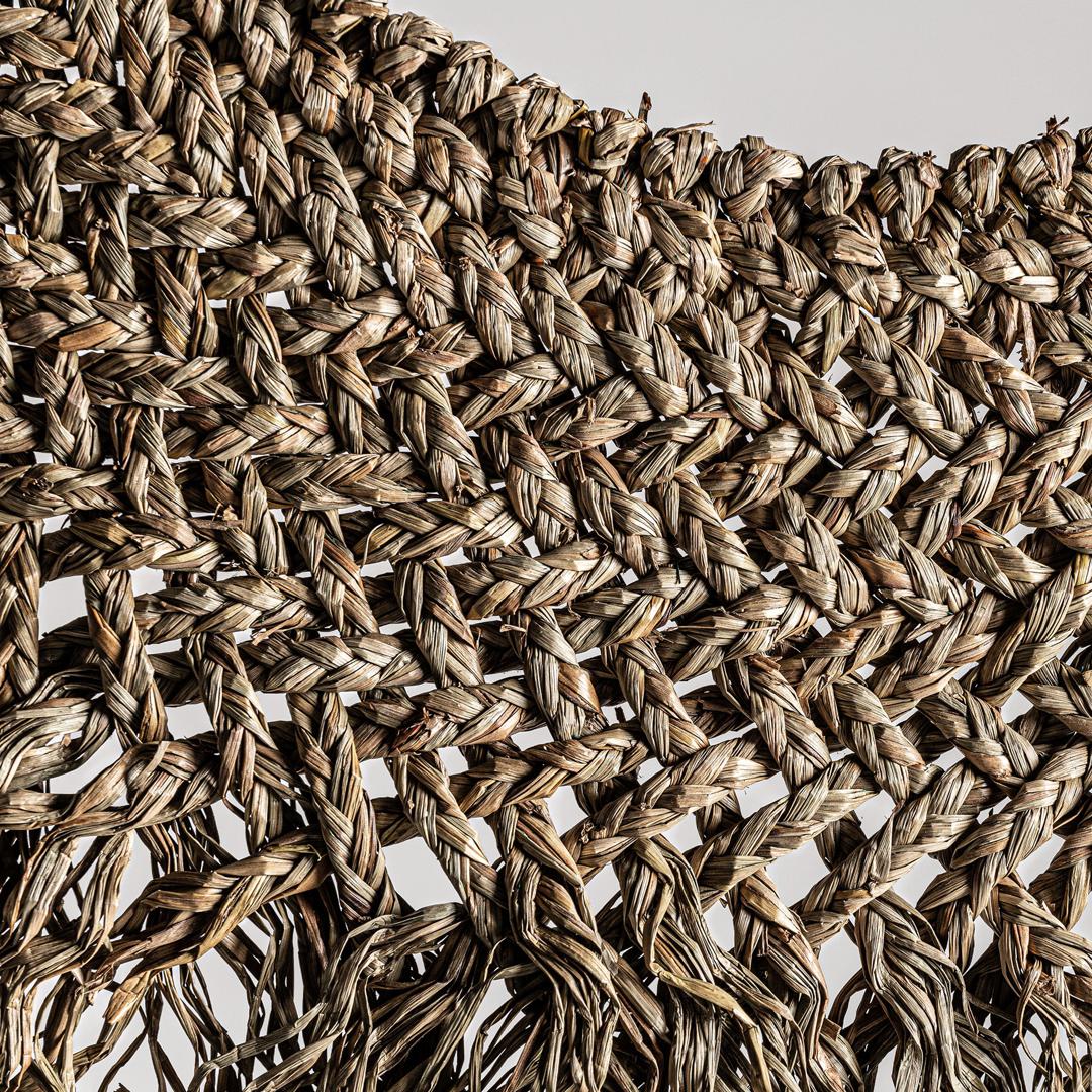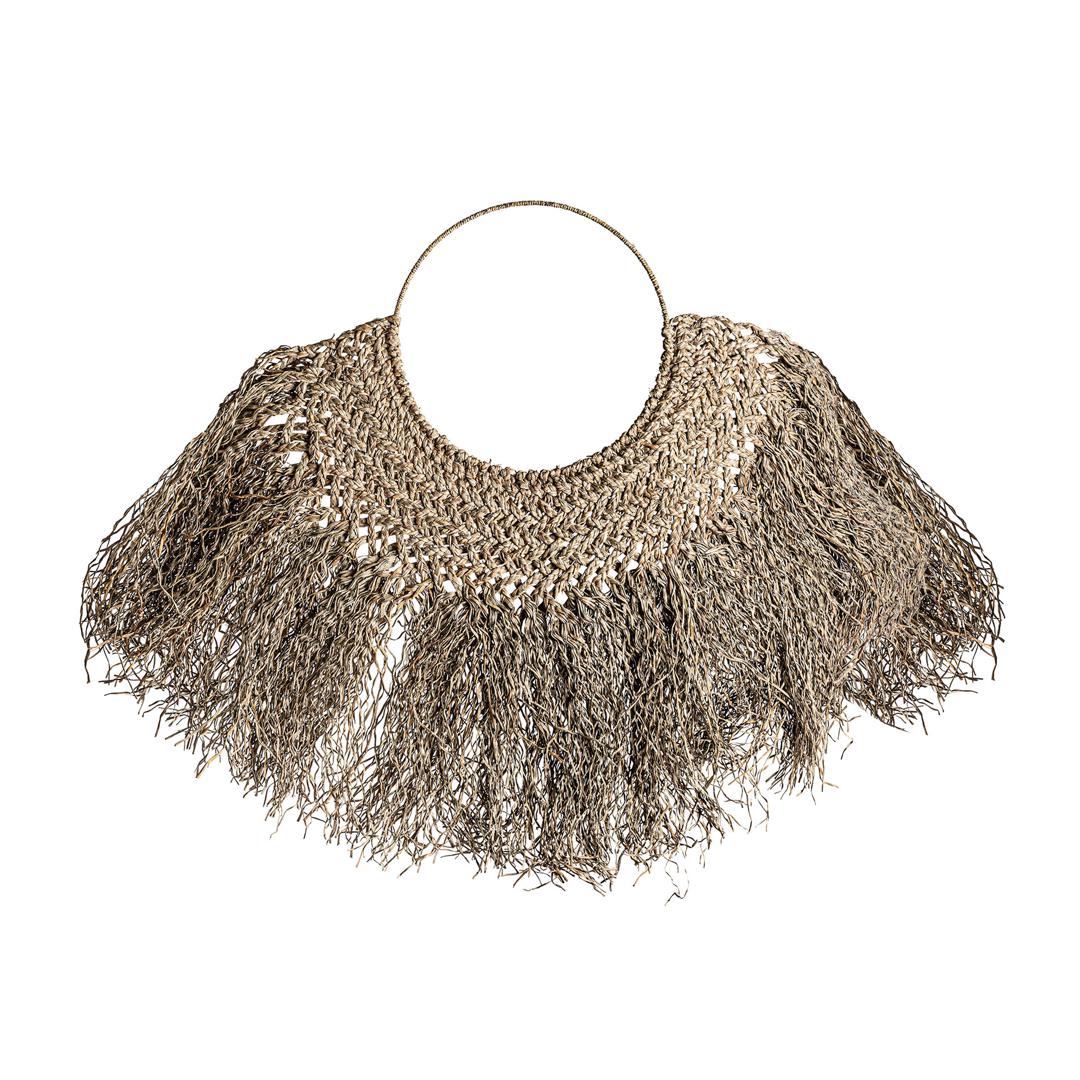 Декоративное панно в этническом стиле из натурального волокна коричневого цвета в сочетании с ракушкой.