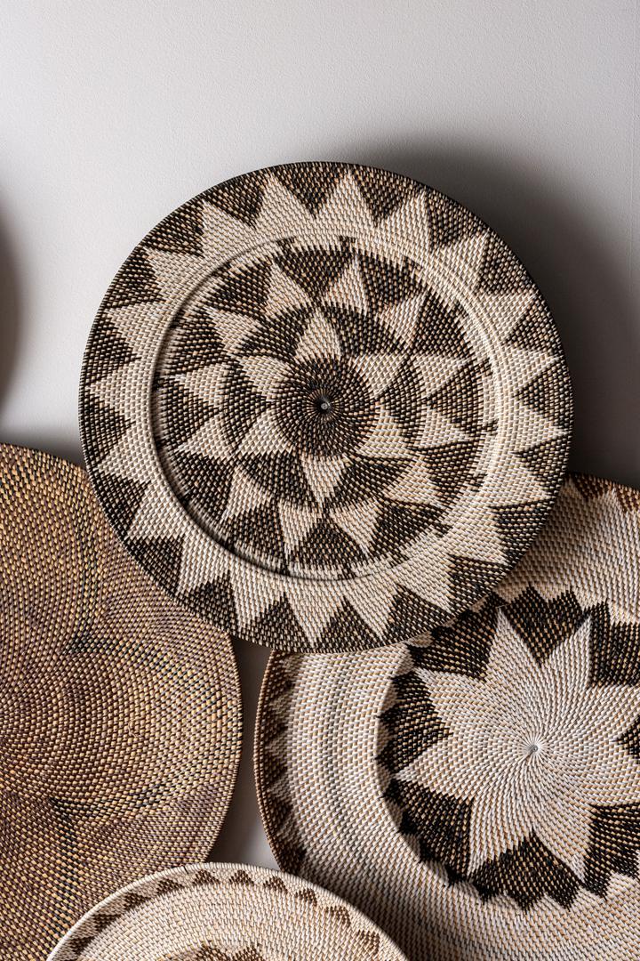 Декоративная настенная панель ZIRBA от фабрики Vical — геометрический декор из натурального ротанга. Настенная панель ZIRBA — потрясающий и уникальный предмет декора, который придаст вашему пространству стиль и индивидуальность. Двухцветный ротанг, выделенный в геометрическом рисунке — это красиво, современно, стильно. Стена с таким пестрым и натуральным декором звездой вашей обстановки. Соберите всю коллекцию панелей ZIRBA! Настенная панель полностью сделана из натурального ротанга двух цветов. Она имеет плетеную фактуру и круглую форму. В зависимости от выбранной модели, диаметр полотна и орнаменты отличаются. Ротанг не портится от влаги и солнца, поэтому этот декор подойдет для выделения стен на террасе. Для чистки рекомендуется использовать мягкие моющие средства и салфетки. Размеры: ширина – 60/80 см, высота – 60/80 см, глубина – 3 см. Вес – 1,4 кг. В коллекцию ZIRBA также включен набор из трех ваз.