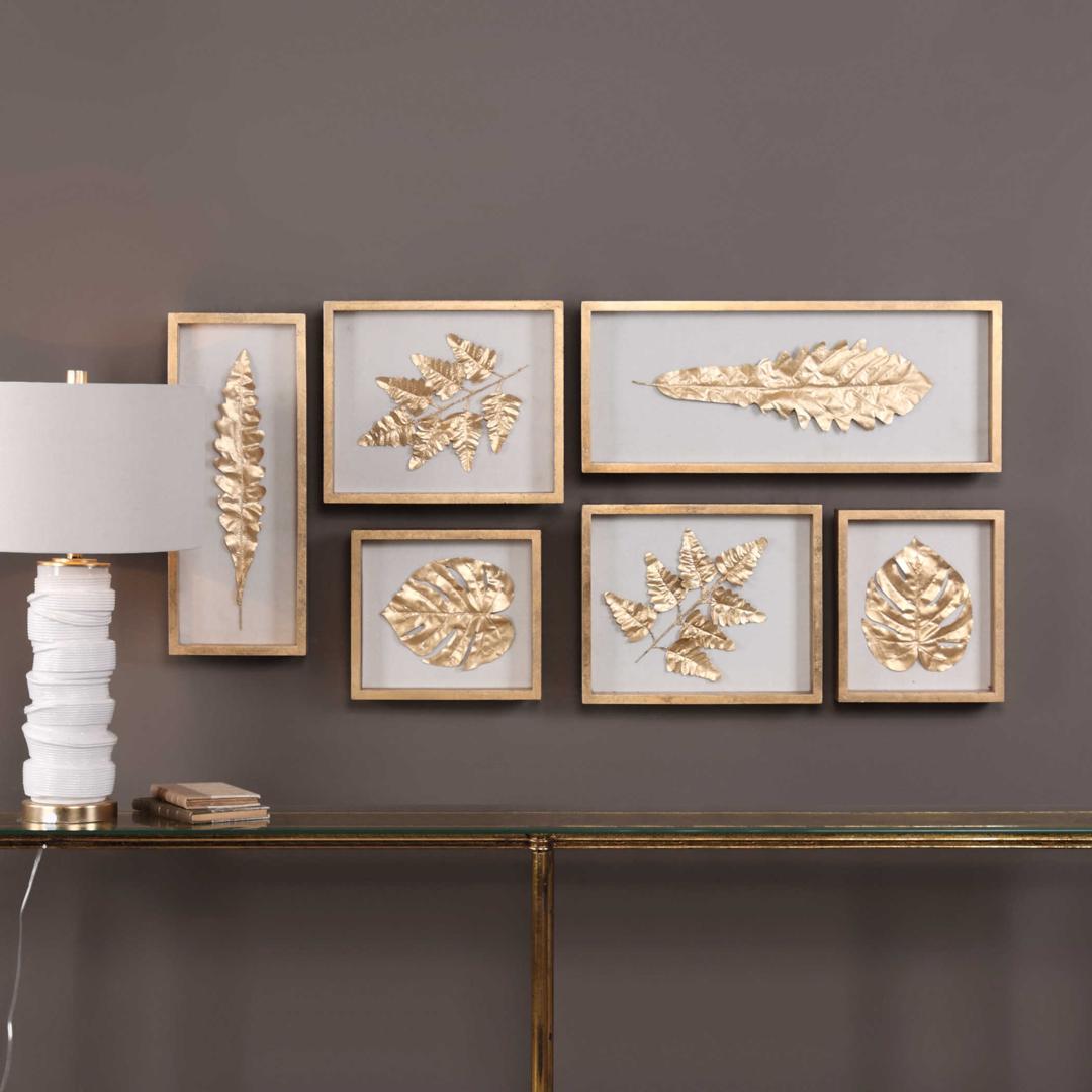 Панно Uttermost Композиция настенного декора GOLDEN LEAVES SHADOW BOXES арт. ZN-171083