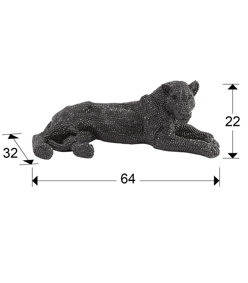 Фигура маленькая лежащей львицы из полирезина с фактурным глянцевым покрытием чёрного цвета, имитирующим инкрустацию стразами.