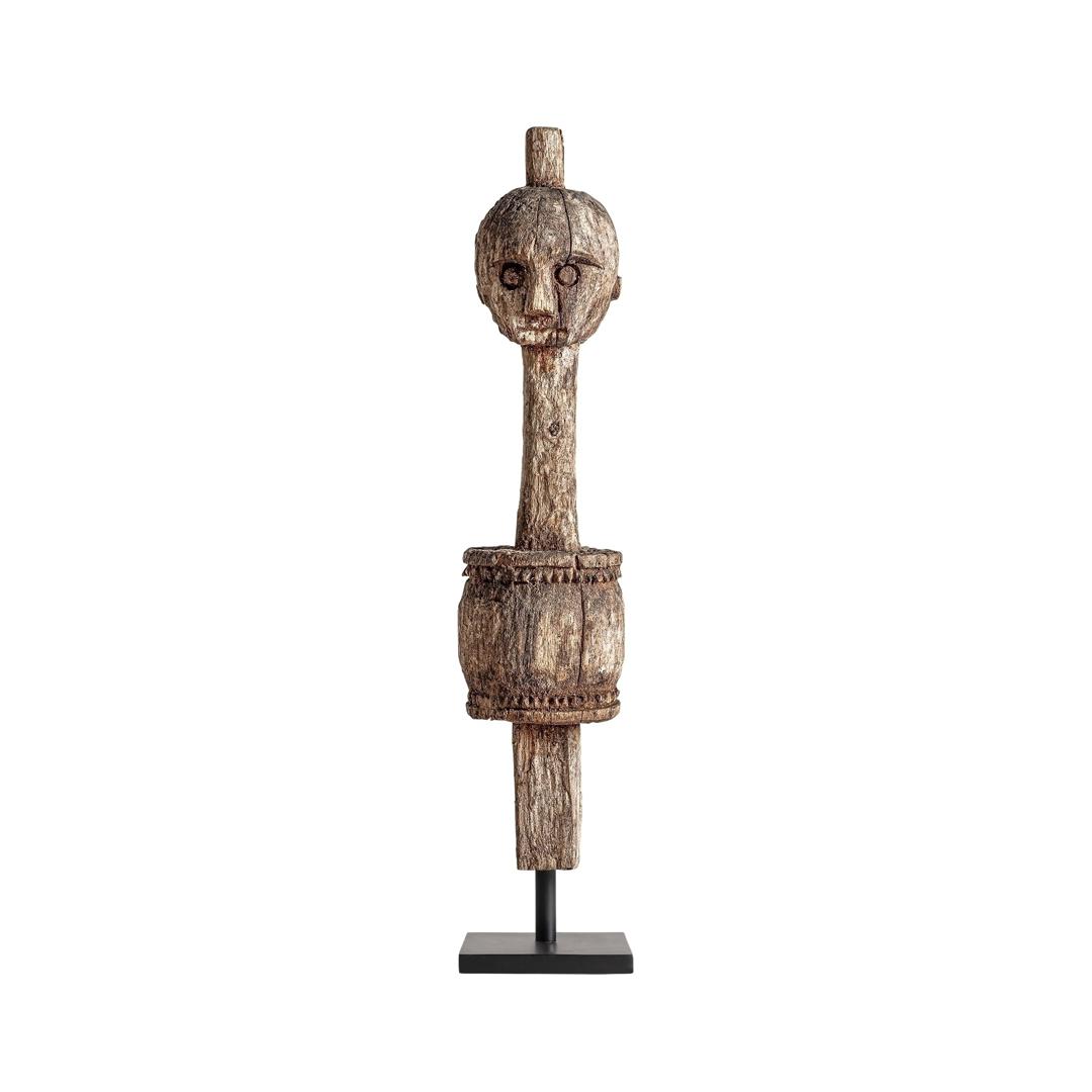 Статуэтка в этническом стиле, выполненная из коричневого мангового дерева с состаренной отделкой в сочетании с черным железом.
