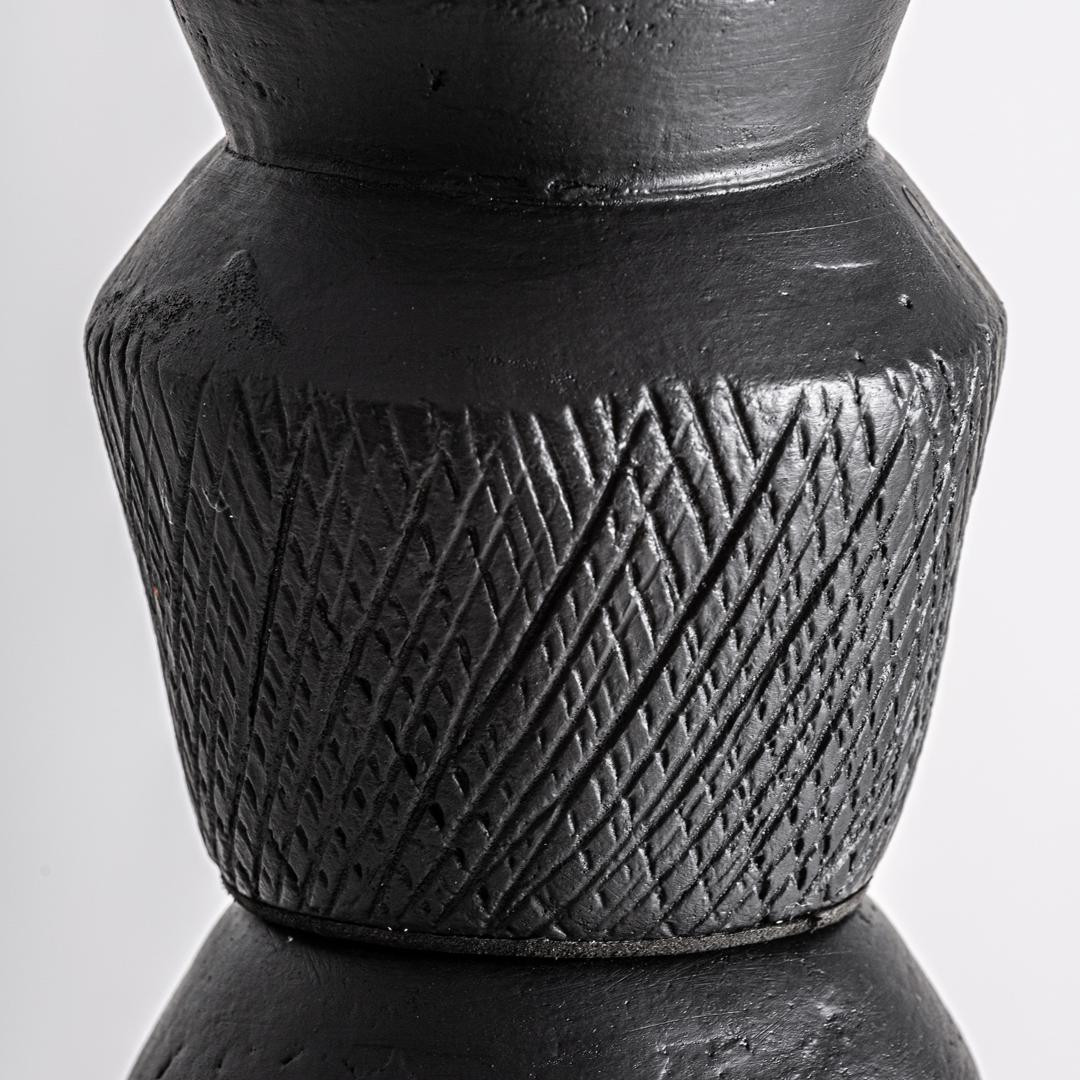 Минималистичная декоративная фигурка «Сома», выполненная из чёрной терракоты с матовой отделкой в сочетании с бежевым мрамором и алюминием. Изделие разборное. Ширина: 19 см, Глубина: 19 см, Высота: 152 см