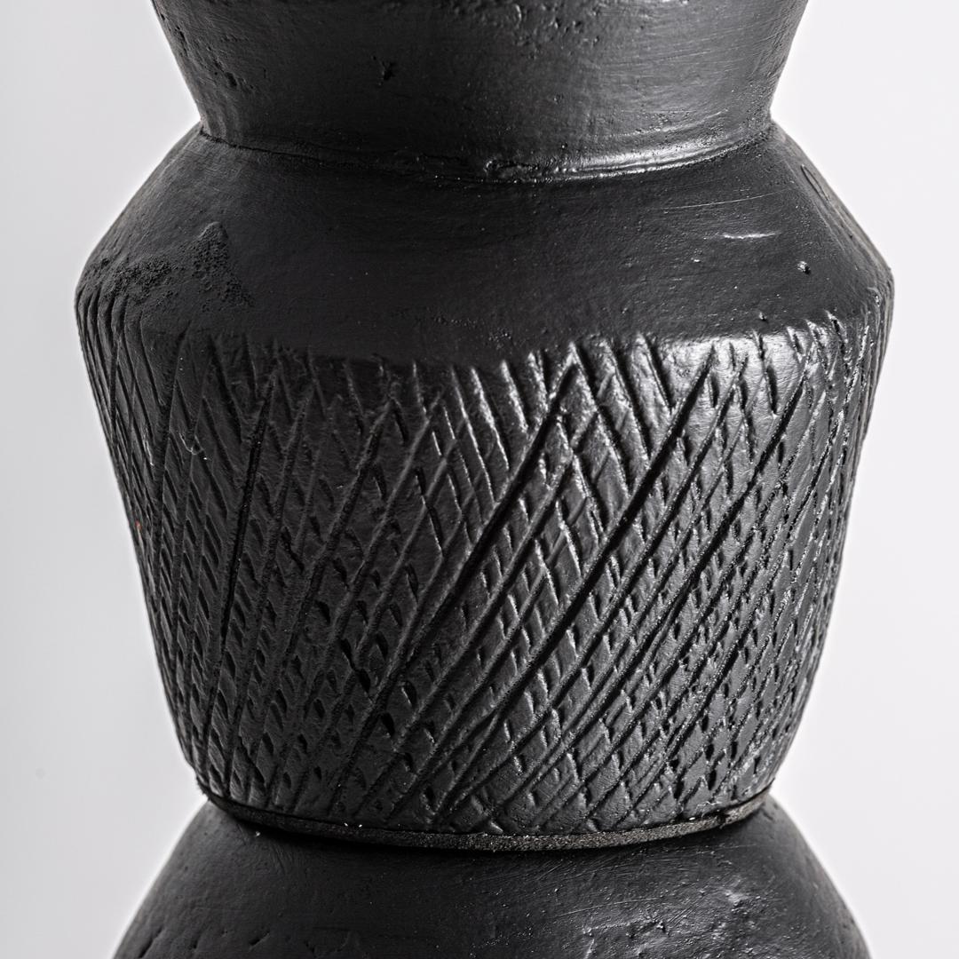 Декоративная фигурка SOMA в современном стиле, выполненная из черной терракоты в сочетании с мрамором и алюминием. Разборная конструкция. Ширина: 20 см, Глубина: 20 см, Высота: 220 см