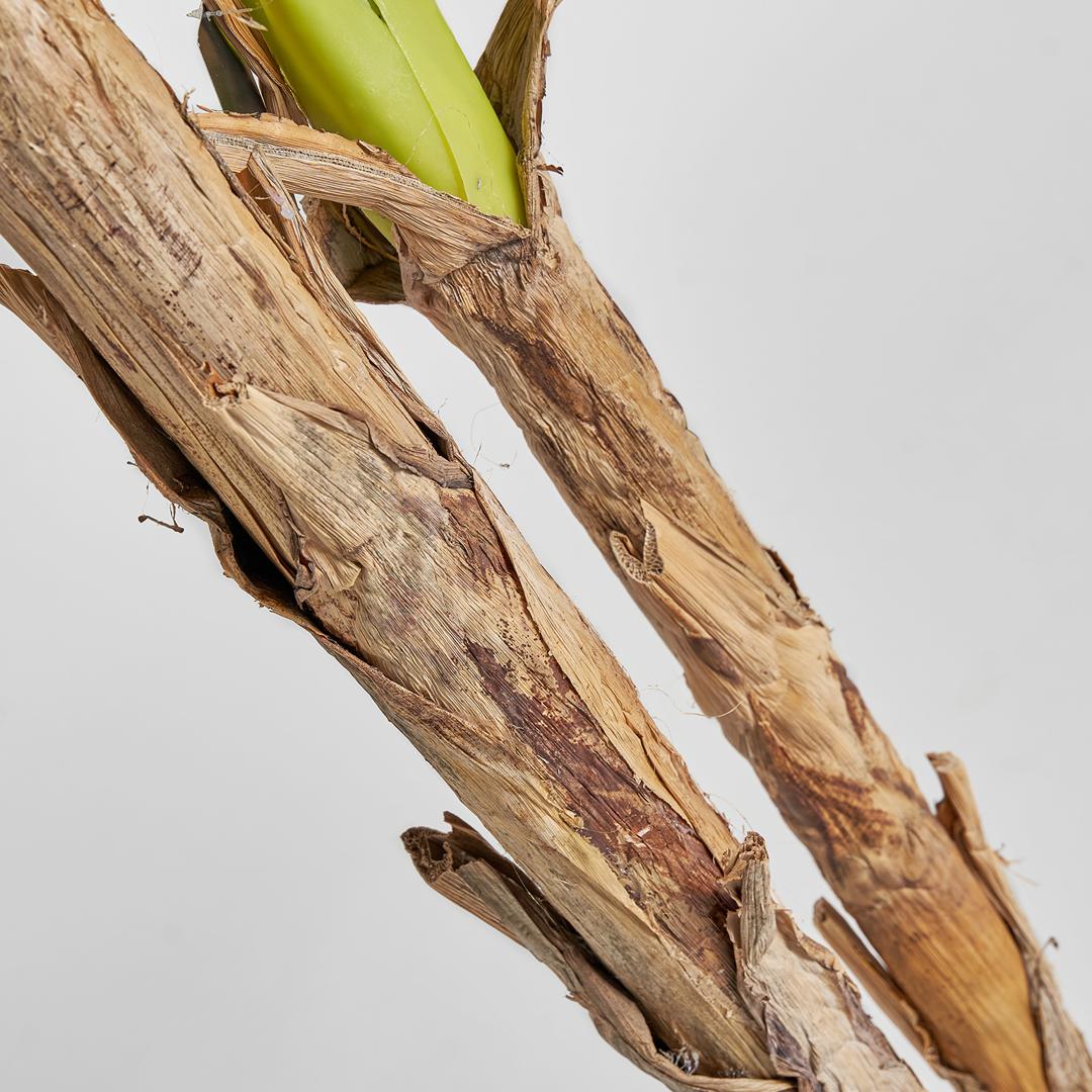 Банановое растение в зеленом стиле потертый шик. Изготовлен из полиэстера в сочетании с тиковым деревом и пластиком. Листья из полиэстера/деревянный ствол и банановая кора/пластик. Съемное изделие.