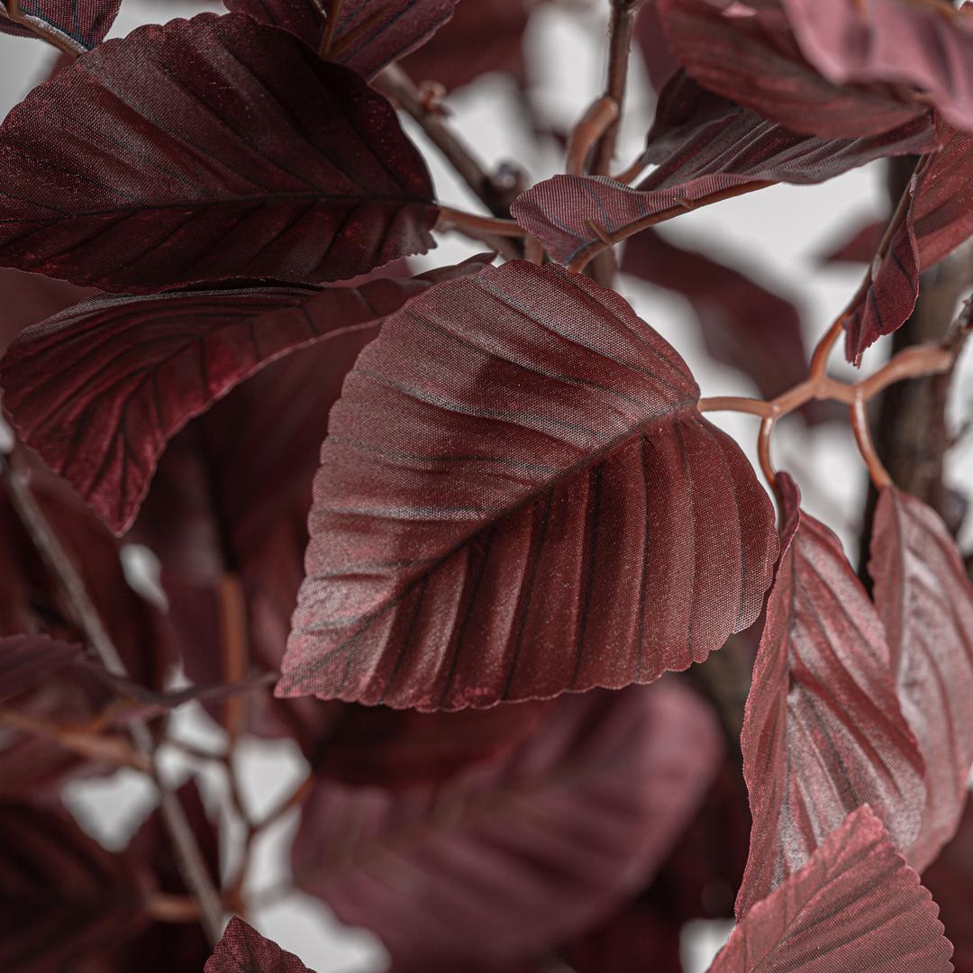 Классическая буковая елка, выполненная из темно-красного полиэстера в сочетании с черным полиэтиленом и черным цементом. Ширина: 70 см, Глубина: 70 см, Высота: 148 см