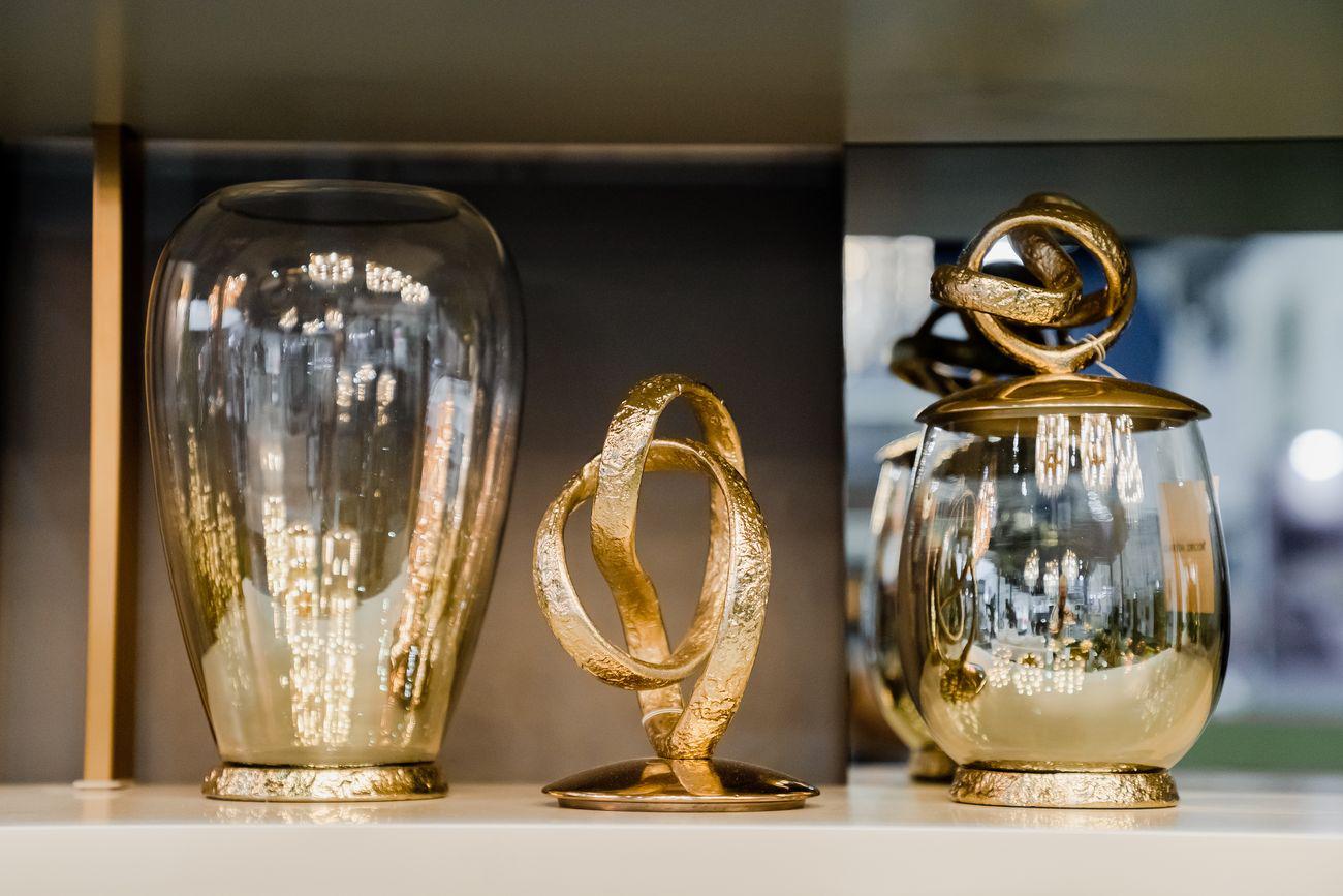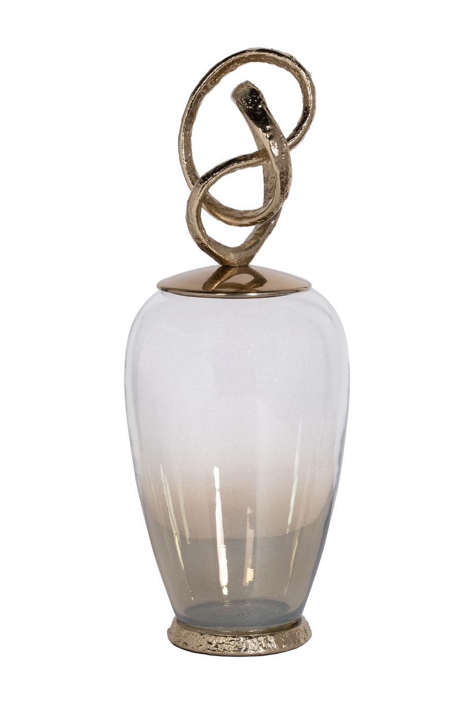 description-full - Оригинальная интерьерная ваза – гармоничное сочетание металла и стекла. Нежная, изысканная, воздушная. Эффектно смотрится за счет крышки необычного дизайна в виде переплетения лианы. Это та самая изюминка, которая делает вазочку уникальной и столь привлекательной. Купить вазу с крышкой можно для украшения гостиной, спальни, столовой, она прекрасно смотрится на журнальном столике и стеклянной консоли, на полке стеллажа и на прикроватной тумбочке. Если ищите оригинальный подарок, это отличный вариант. В каталоге Garda Decor представлены декоративные вазы для интерьера в стилистике арт-деко, которые придутся по вкусу любому ценителю эксклюзивных вещей.