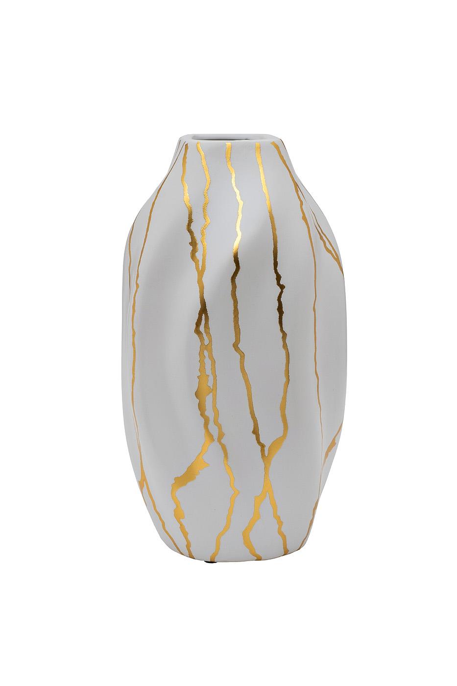 description-full - Керамическая ваза с золотом воплощает основную мысль стиля ар-деко – дорогая роскошь в тандеме с благородных аристократизмом. Данный аксессуар способен легко интегрироваться в современный интерьер и стать не только его украшением, но и одним из основных декоративных акцентов. Белая ваза с золотом – классика стилистики ар-деко. В ней красиво смотрятся как живые, так и искусственные цветы, флористические композиции из сухоцветов, букеты из веток. В качестве материала изготовления выступает керамика, а за декоративность отвечает золотое напыление. Красивая дизайнерская ваза станет приятным подарком для ценителей эксклюзивного декора и эффектным дополнением к жилому пространству.