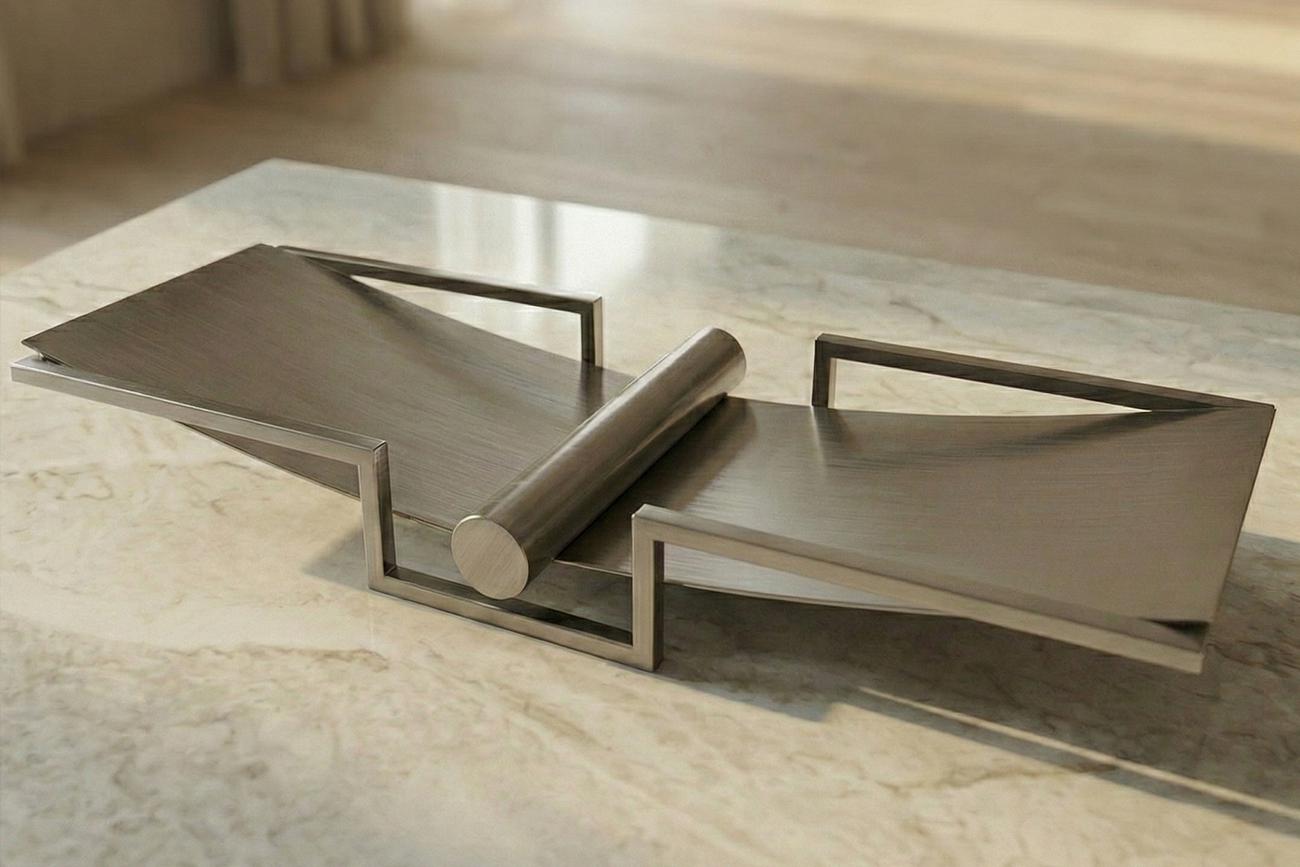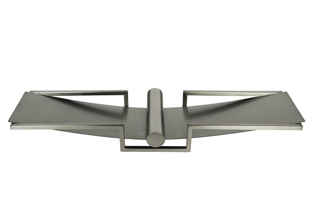 description-full - Графичная металлическая форма построена на балансе плоскостей и линий: строгая геометрия смягчена плавным изгибом, благодаря чему предмет выглядит как интерьерный объект современного искусства. Матовый никель даёт мягкое рассеянное свечение без холодного блеска, подчёркивая глубину металла и чистоту силуэта. Такая декоративная ваза сама формирует композицию, добавляя пространству ритм и архитектурность. Минималистичный характер делает её выразительным акцентом на консоли, журнальном столе или в нише. Это металлическая ваза для современных интерьеров, где ценится структура, фактура и продуманная пластика форм. Особенно гармонично смотрится в стилях контемпорари (contemporary), минимализм и мягкий индастриал (soft industrial), подчеркивая собранный и статусный характер пространства.