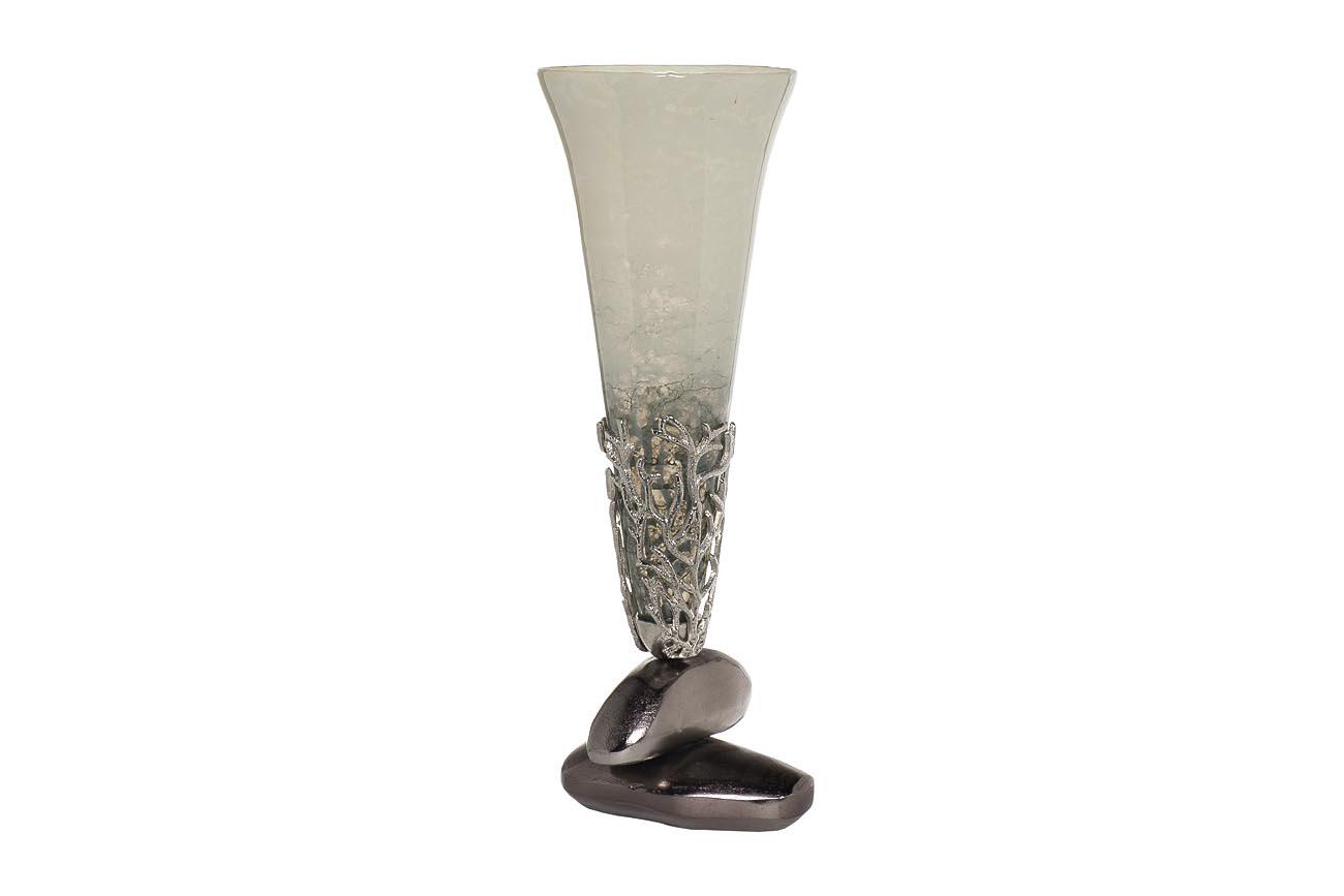 description-full - Стеклянная ваза с металлическим основанием сочетает в себе хрупкость стекла и монументальную прочность металла. Тот редкий случай, когда ваза берет на себя ключевые декоративные функции в интерьере и легко с ними справляется. Изысканная ручная работа, первоклассные материалы, высокий стиль – в этой вазе воплотились лучшие качества современного декора. Она эффектно смотрится как соло, так и с букетом живых или искусственных цветов. Если ищите особенный подарок, эта эксклюзивная ваза станет отличным выбором.