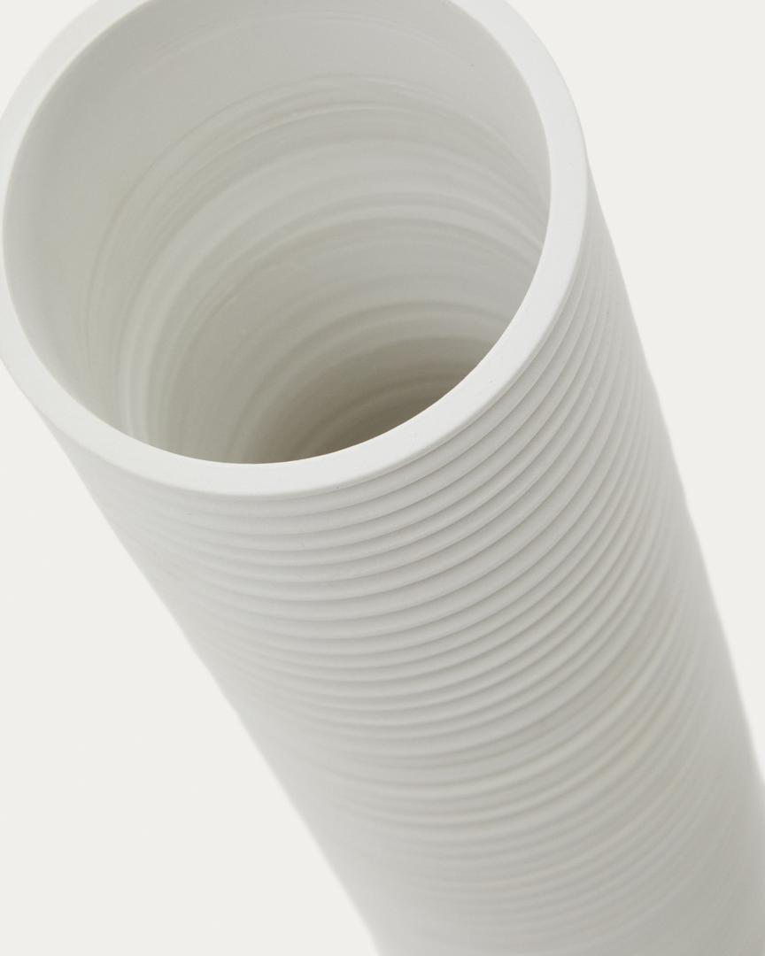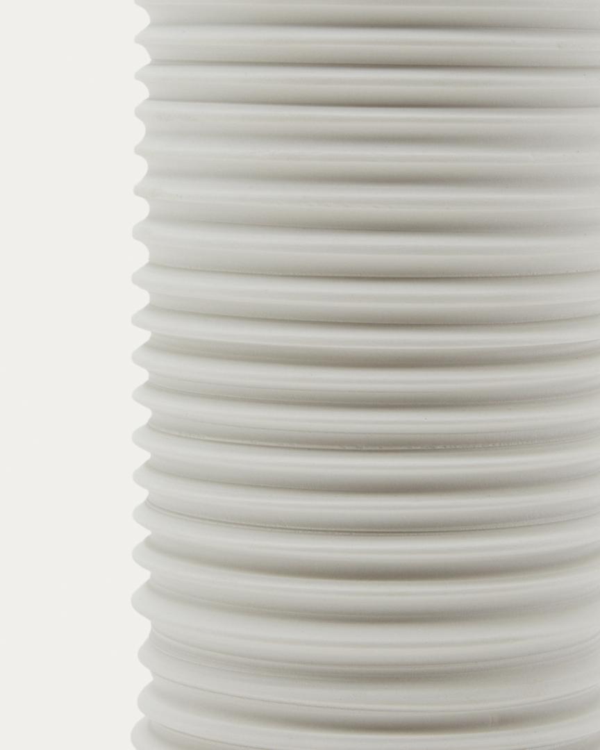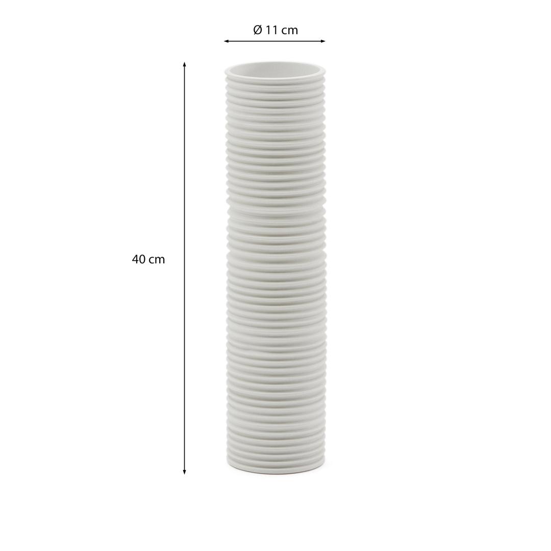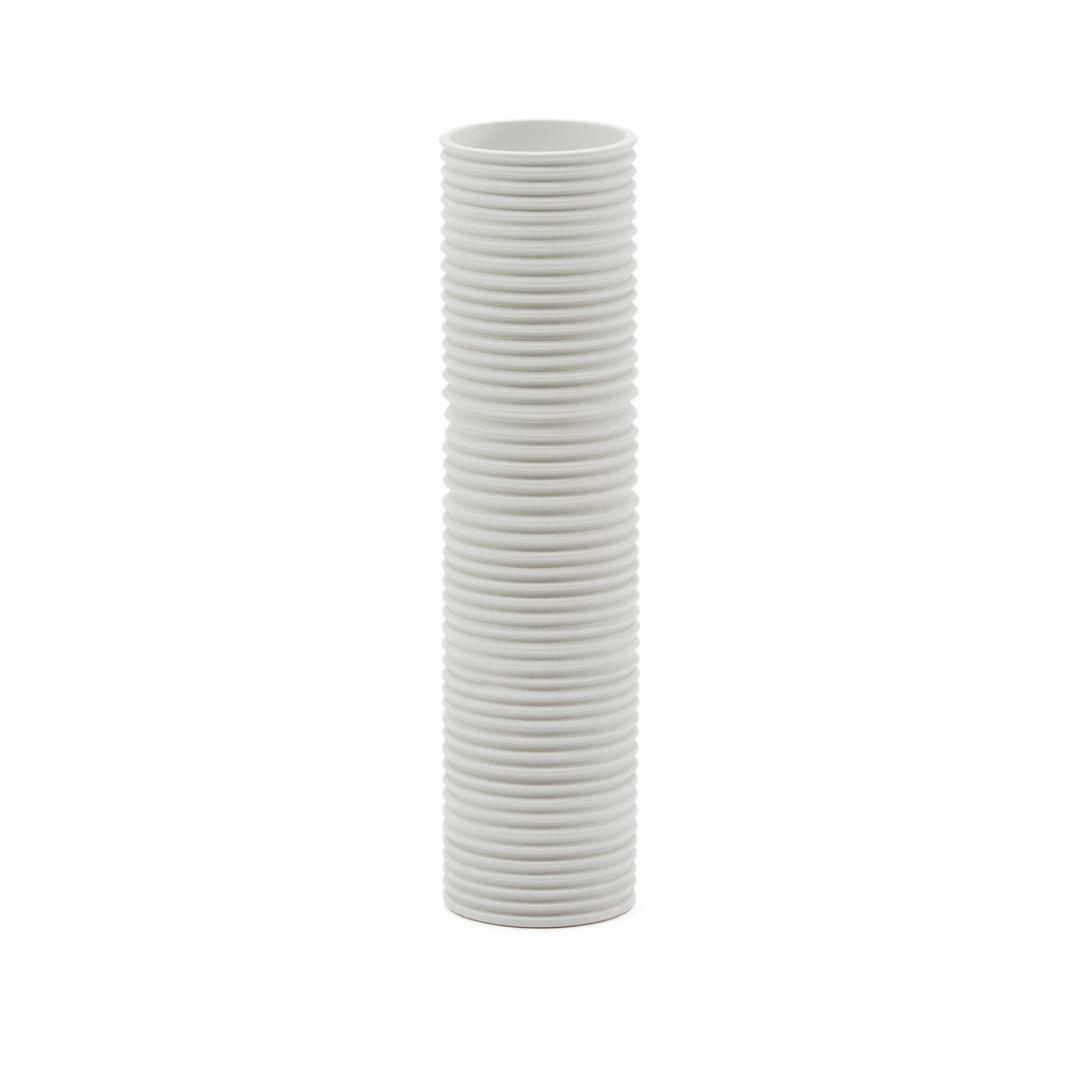 Ваза Sibone от фабрики La Forma (ex Julia Grup) – керамическая гофра для стильного акцента в домашнем дизайне. Ваза Sibone имеет чудесный и необычный вид. Ее цилиндрическая форма дополнена фактурой по типу сжатой пружины. Такой эффект визуально дает больше объема и рельефа, чем обычный цилиндр с гладкой внешней поверхностью. Белый цвет лаконичен для любых обстановок. Поэтому Sibone – это универсальность и стиль в одном изделии! Ваза имеет форму цилиндра с нарезной фактурой. Материал изготовления – керамика белого цвета. Это натуральный экологичный материал, который не портится от влаги и солнца. Толстые стенки изделия говорят о высокой ударопрочности и устойчивости, что важно при эксплуатации. В коллекции Sibone вазы представлены в двух размерах: ширина – 11/13 см, высота – 20/40 см, глубина – 11/13 см. Изделия необходимо чистить вручную деликатным способом, не используя абразивы, чтобы не повредить фактуру. Эксплуатация на открытых территориях не рекомендуется. Для большего акцента рекомендуем приобрести несколько изделий из коллекции Sibone.