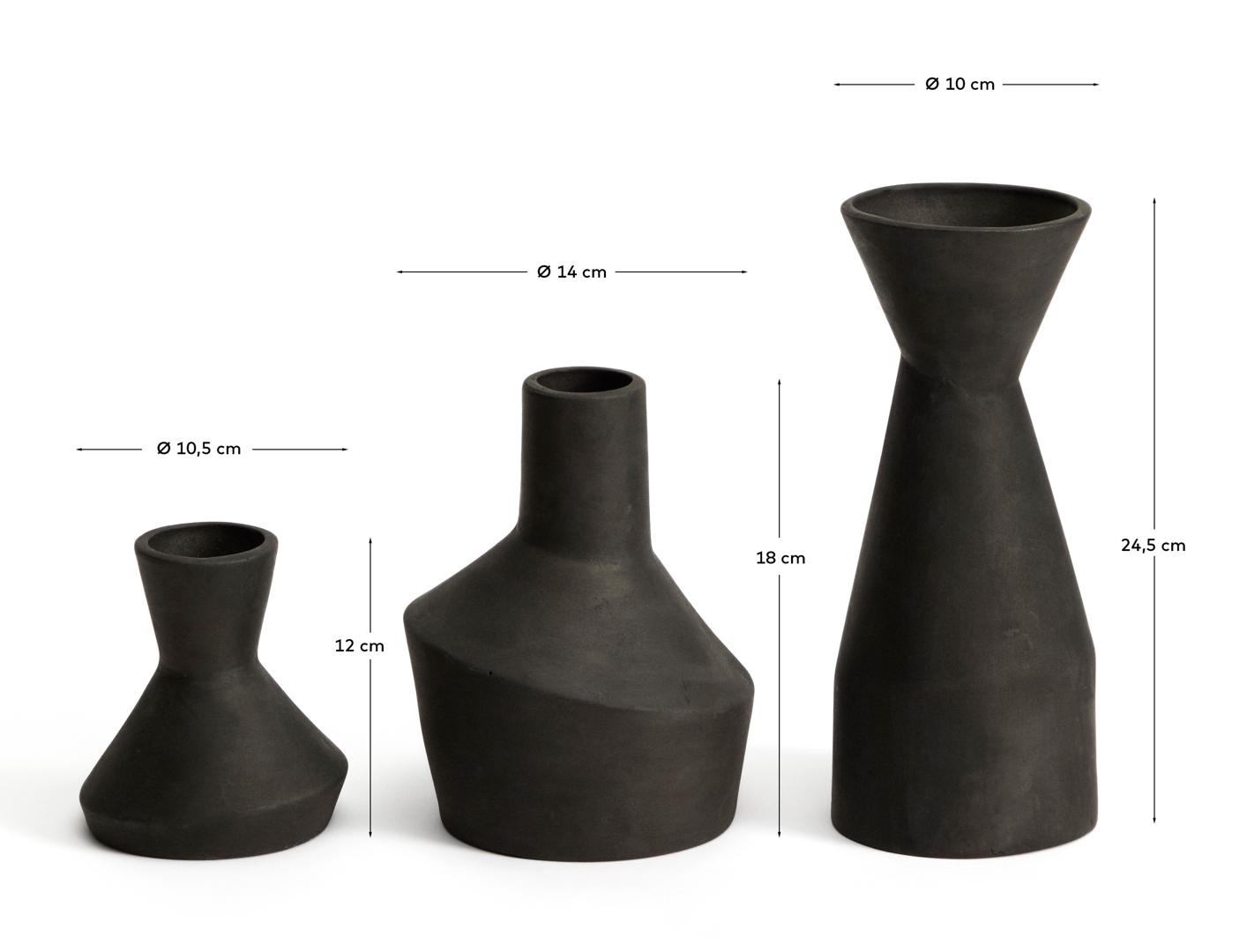 Ваза La Forma (ех Julia Grup) Набор из 3 ваз Dunari из черной терракоты 10,2 см / 13,5 см / 10 см арт. 423772