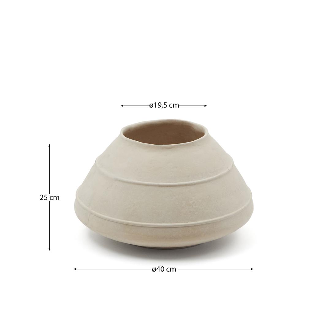 Ваза Sylan от фабрики La Forma (ex Julia Grup) – модный папье-маше в органичной форме. Ваза Sylan придаст индивидуальность вашей комнате, ведь ее материал имеет уникальный тон и фактурность. Это переработанная бумага, которой техника папье-маше дала вторую жизнь. А вы позаботитесь о планете и получите стильный и современный акцент для любой комнаты. Выбирайте экологичность, будьте в тренде! Ваза полностью сделана из переработанной бумаги в форме трапециевидного сосуда. Цвет изделия серо-бежевый, в натуральной отделке. Поверхность имеет декор в виде двух рельефный полос, проходящих параллельно друг другу по всей окружности. В коллекции Sylan ваза представлена в двух размерах: ширина – 60/40 см, высота – 30/25 см, глубина – 60/40 см, диаметр горловины – 19,5/30 см. Рекомендации по уходу: пыль протирать влажной мягкой салфеткой. Не использовать агрессивные моющие средства. При сильном намокании изделия необходимо как можно быстрее просушить. Вазы не предназначены для эксплуатации на открытой территории. Использовать только в отапливаемых сухих помещениях.