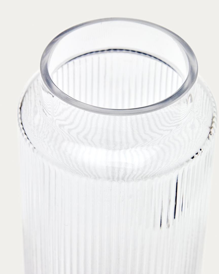 Ваза Claudia от фабрики La Forma (ex Julia Grup) – стекло в оригинальной форме. Ваза Claudia – идеальный предмет, который придаст стиль любой комнате в доме. Его текстурированный прозрачный дизайн выходит за рамки обычного и придаст индивидуальность вашему пространству. Добавьте стеклянной красоты в свою обстановку! Ваза сделана из прозрачного стекла. Фактура ребристая, придающая изделию оригинальную форму и необычное преломление света и воды. Узкая цилиндрическая форма с выделенным горлом удобна в эксплуатации. Стекло не закаленное, поэтому требует осторожного обращения, деликатного ухода. Допускается чистка мягким средством, без использования абразивов. Ваза не предназначена для мытья в посудомоечной машине. В коллекции две вазы одинаковые по дизайну и разные по габаритам. Размеры: ширина – 12/12 см, высота – 25/30 см, глубина – 12/12см. Вес – 1/1,75 кг. Для более полного декора комнаты рекомендуем приобрести обе вазы в разных размерах.