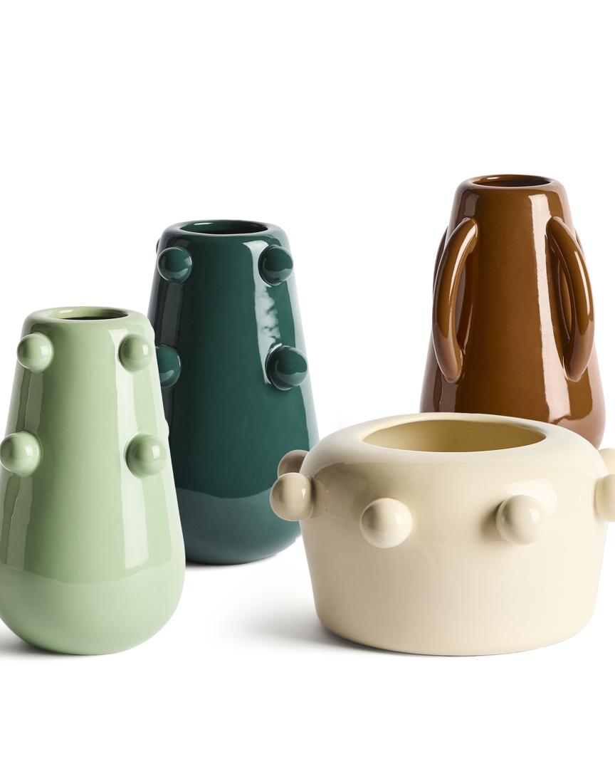 Вазы Odra изготовлены из керамики с глянцевой поверхностью. Их отличают округлые формы и рельефы, интегрированные в поверхность, которые подчеркивают их декоративный характер. Предназначенные для использования в различных интерьерах, они могут стоять как по отдельности, так и в сочетании с другими элементами, добавляя цвет и выразительность полкам, столам или комодам.