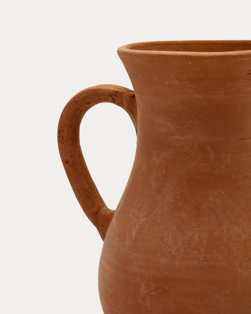 Терракотовая ваза Mercia от фабрики La Forma (ex Julia Grup) – стиль и спокойствие в одном дизайне. Терракотовая ваза Mercia создана, чтобы усилить эффект домашнего уюта в вашей квартире. Средиземноморский дизайн и терракотовая глина вместе образуют теплую атмосферу, которая безусловно распространится на всем пространстве. Для декора гостиной или кухни, с цветами или без них ваза будет гармонична в любом образе и окружении! Ваза полностью сделана из керамики в натуральной отделке. Форма в виде кувшина с ручкой и носиком для слива обеспечивает удобную эксплуатацию и традиционный вид для домашней обстановки. Для сохранения первозданного вида не рекомендуется наполнять вазу водой. Для сохранения первоначального вида, изделие следует мыть вручную, не используя агрессивную химию и абразивы. В коллекции ваза представлена в двух размерах: ширина – 16/13,5 см, высота – 24/18 см, глубина – 19/17 см.