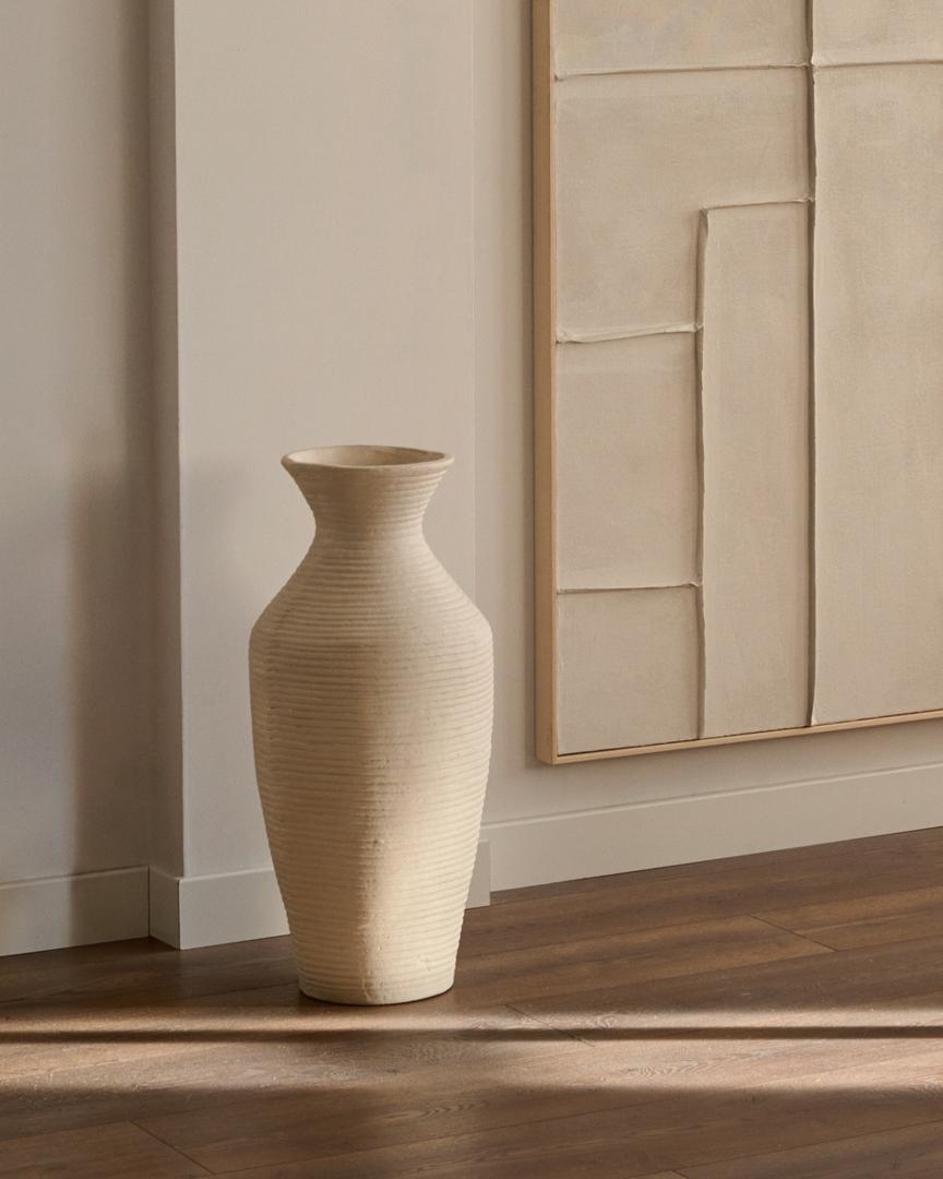 Ваза Pria от фабрики La Forma (ex Julia Grup) — фактурный дизайн из папье-маше. Ваза Pria изготовлена из модного материала, который создан из переработанного сырья. Папье-маше набирает обороты и умеет принимать стильный и современный вид, способный выделить ваше пространство. Выбирайте заботу о планете вместе с красотой своего интерьера. Ваза полностью сделана из переработанной целлюлозы по технике папье-маше. Цвет белой глины придает изделию естественный вид с нотой Средиземноморья. А фактурная поверхность создает эффект ручной гончарной работы. Ваза имеет традиционную симметричную форму, благодаря чему обеспечена хорошая устойчивость. Ваза не предназначена для воды. Только декоративное использование обособленно либо под сухоцветы. В коллекцию Pria включено две вазы разных размеров: ширина – 32/32 см, глубина – 32/32 см, высота – 72/51 см. Вес изделия – 8,5/5,7 кг. Чистка изделия только сухой или слегка влажной мягкой тканью.