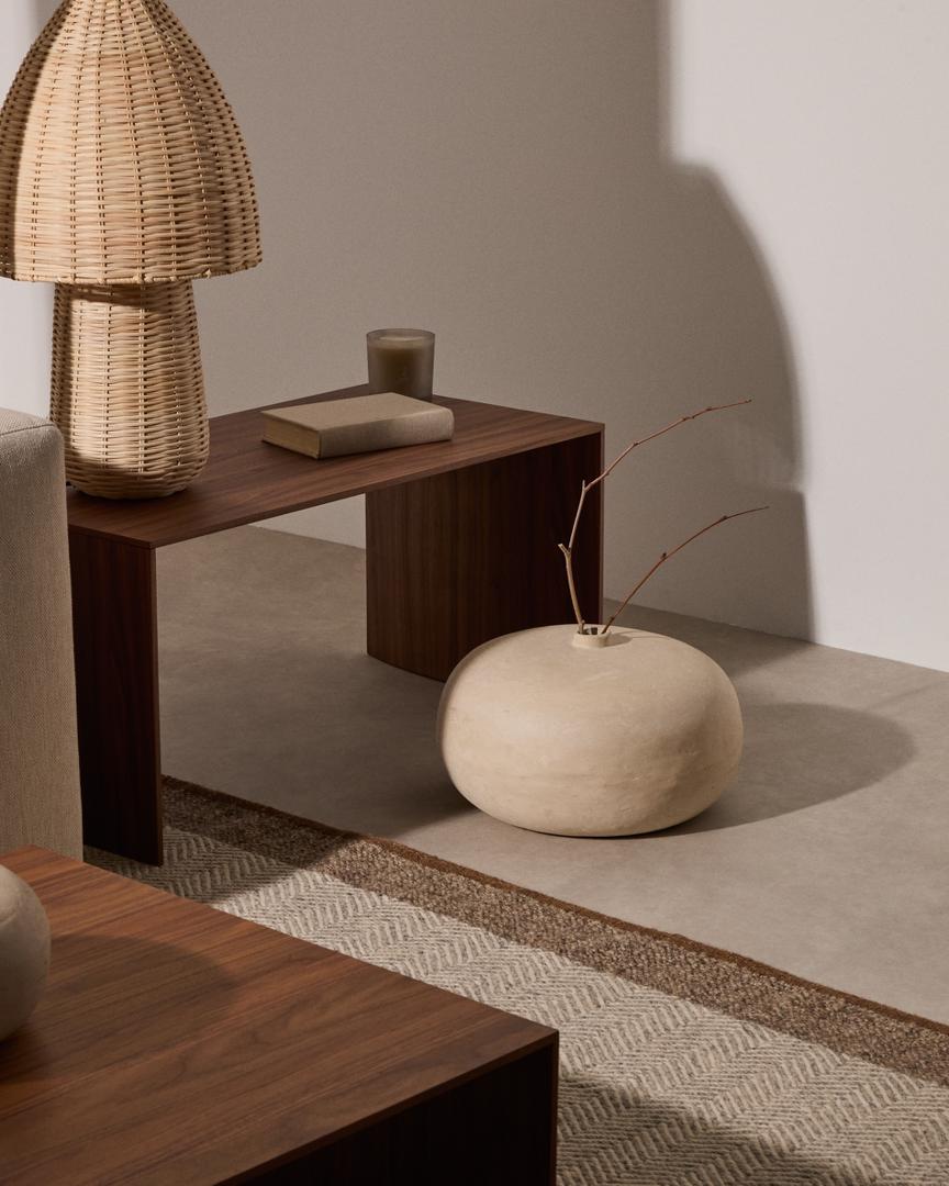 Эта ваза из папье-маше с круглой формой и гладкой отделкой сочетает в себе простоту и элегантность. Ее компактный и органичный дизайн делает ее универсальным предметом, идеально подходящим для добавления тепла и естественного ощущения в любой уголок дома.