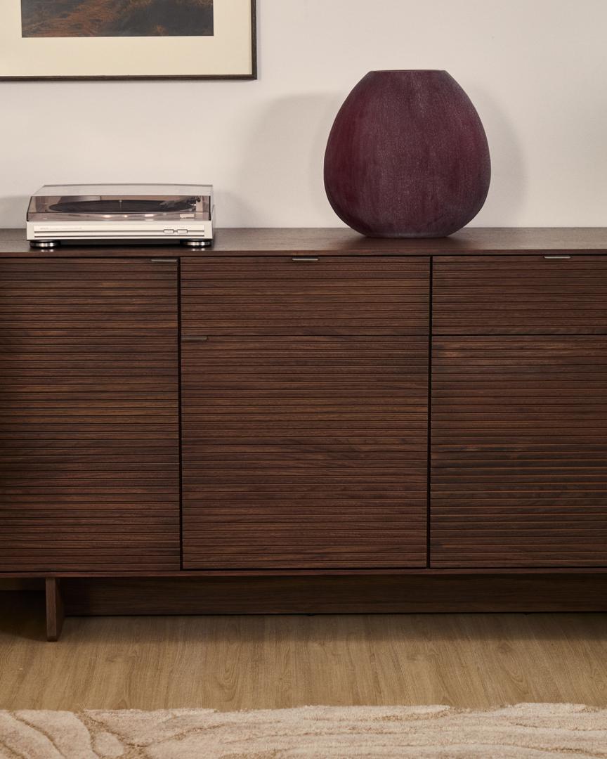 Ваза Rovena от фабрики La Forma (ex Julia Grup) – простой, но выразительный дизайн для декора в доме. Ваза Rovena — это чудесный аксессуар, который гармонично впишется в вашу обстановку. Пыльно-розовый цвет и каплевидная форма создают вид, напоминающий лепесток розы. Ваза изготовлена методом ручного выдува, поэтому каждое изделие будет эксклюзивным и неповторимым, с уникальными оттенками. Такой цветочный дизайн станет персональным украшением комнаты! Ваза полностью сделана из толстого стекла, которое окрашено матовой краской в розово-бордовый цвет. Покрытие неоднородное, за счет чего на поверхности образуются блики, придающие эффект фактурности. Дно имеет утолщение, поэтому ваза устойчивая. Вазу запрещено мыть в посудомоечной машине. Только ручная чистка деликатным способом, без отбеливателей и абразивов. Размеры: ширина — 33,5 см, высота — 33,5 см, глубина — 13,5 см. Вес изделия — 5,43 кг. Вазу допускается использовать на открытой территории, но под навесом.