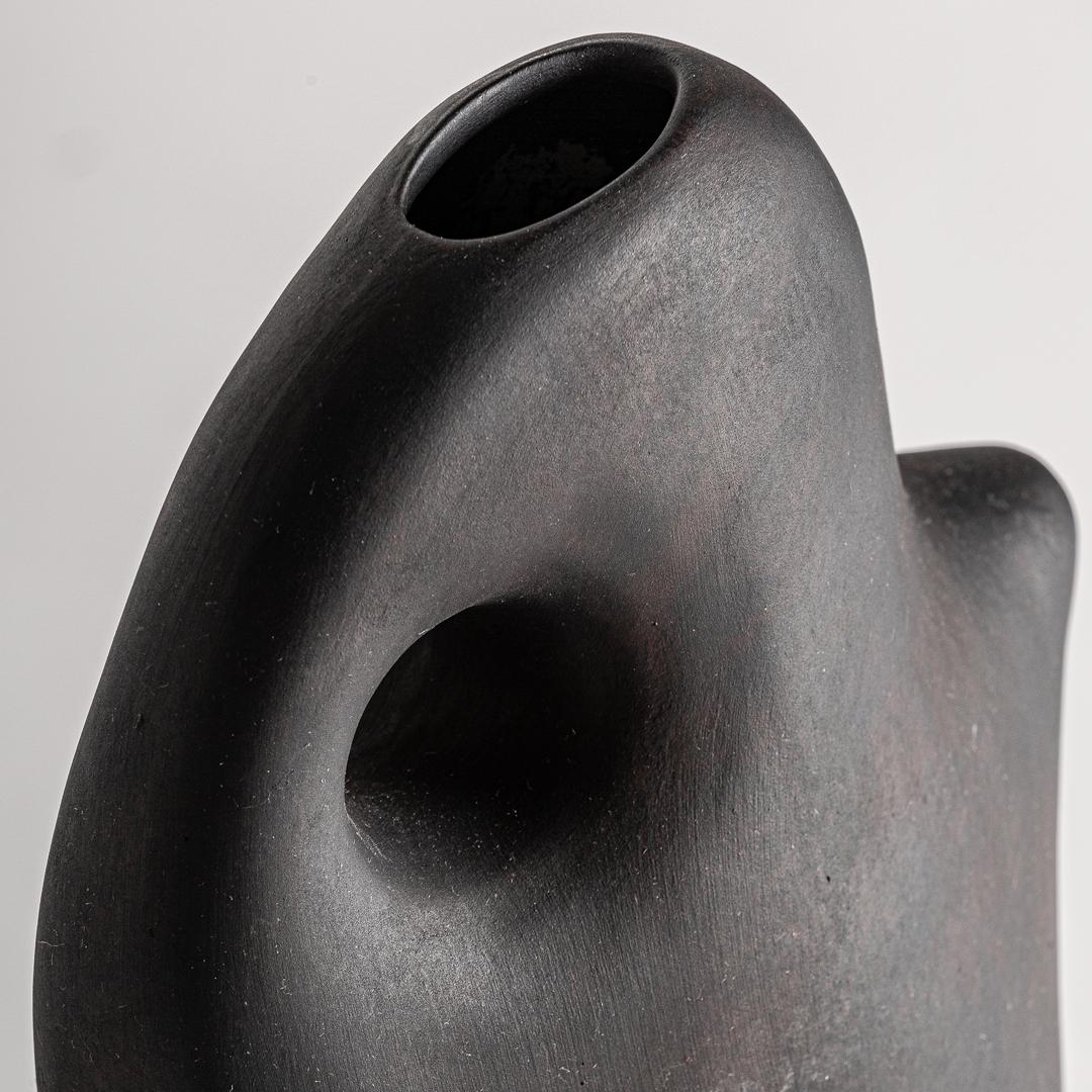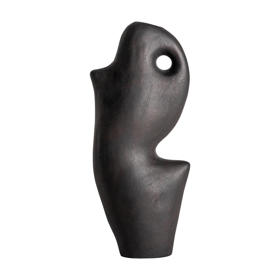 Ваза Nohae от фабрики Vical — скульптурный аксессуар в стиле арт-деко Ваза Nohae станет прекрасным дополнением к вашему современному дизайну. Когда простого акцента мало и обстановке нужен стильный фокус, то черная скульптура в стиле арт-деко будет то, что нужно. А вместе с букетом вы получите совершенно прекрасный вид. Ваза полностью сделана из керамики. Сверху она окрашена в черный матовый цвет. Покрытие защищает керамику от механических воздействий, упрощает чистку от загрязнений. Форма вазы скульптурная, с зауженной горловиной в верхней части. При использовании вазы по прямому назначению следует учитывать смещенный центр тяжести. Чтобы улучшить устойчивость, производит сделал утолщение донной части. Для устойчивости донная часть вазы имеет утолщение. Керамика — натуральный материал, который не портится от влаги и воздействия ультрафиолета. Поэтому вазу можно использовать на открытом пространстве, но под навесом. Для сохранения первоначального вида, вазу запрещено мыть в посудомоечной машине. Только ручная чистка деликатным способом. Высота вазы 47 см.