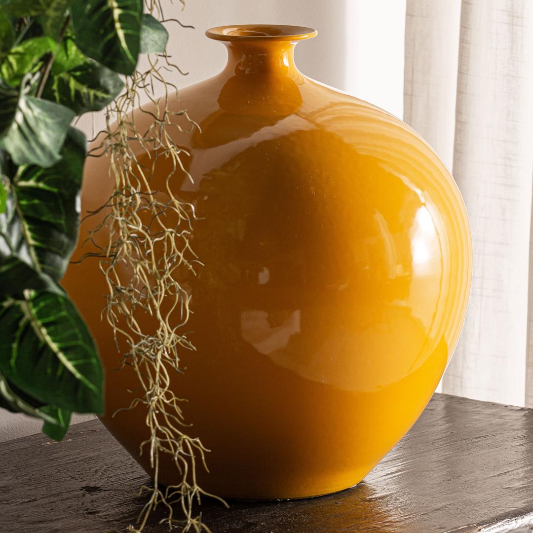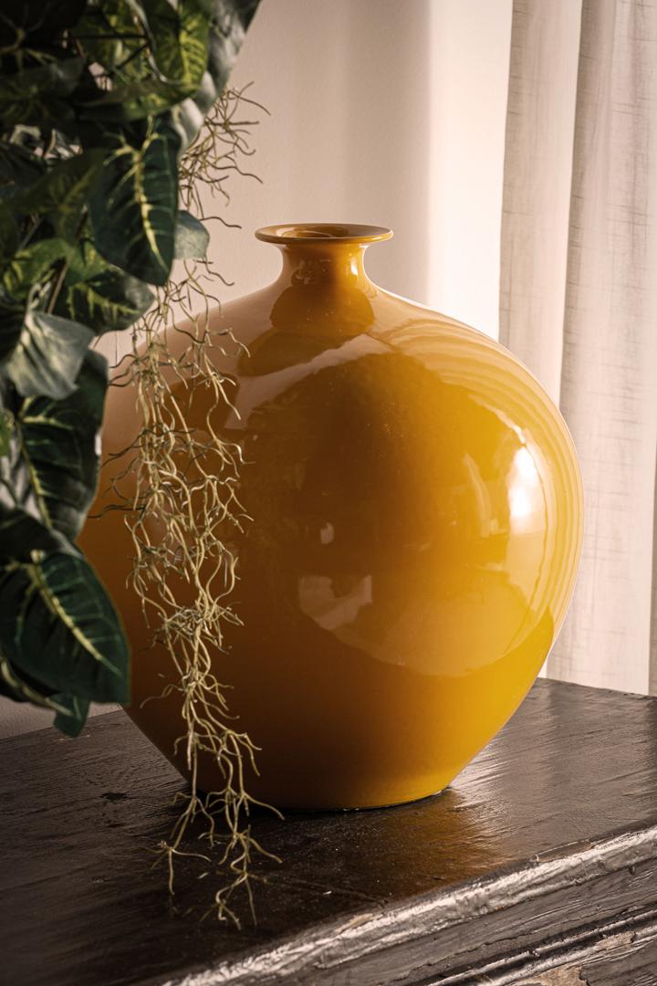 Ваза горчичного цвета, в колониальном стиле. Изготовлен из керамики.
