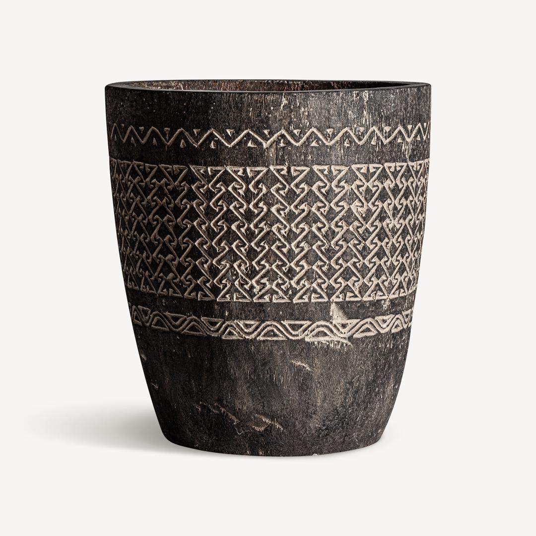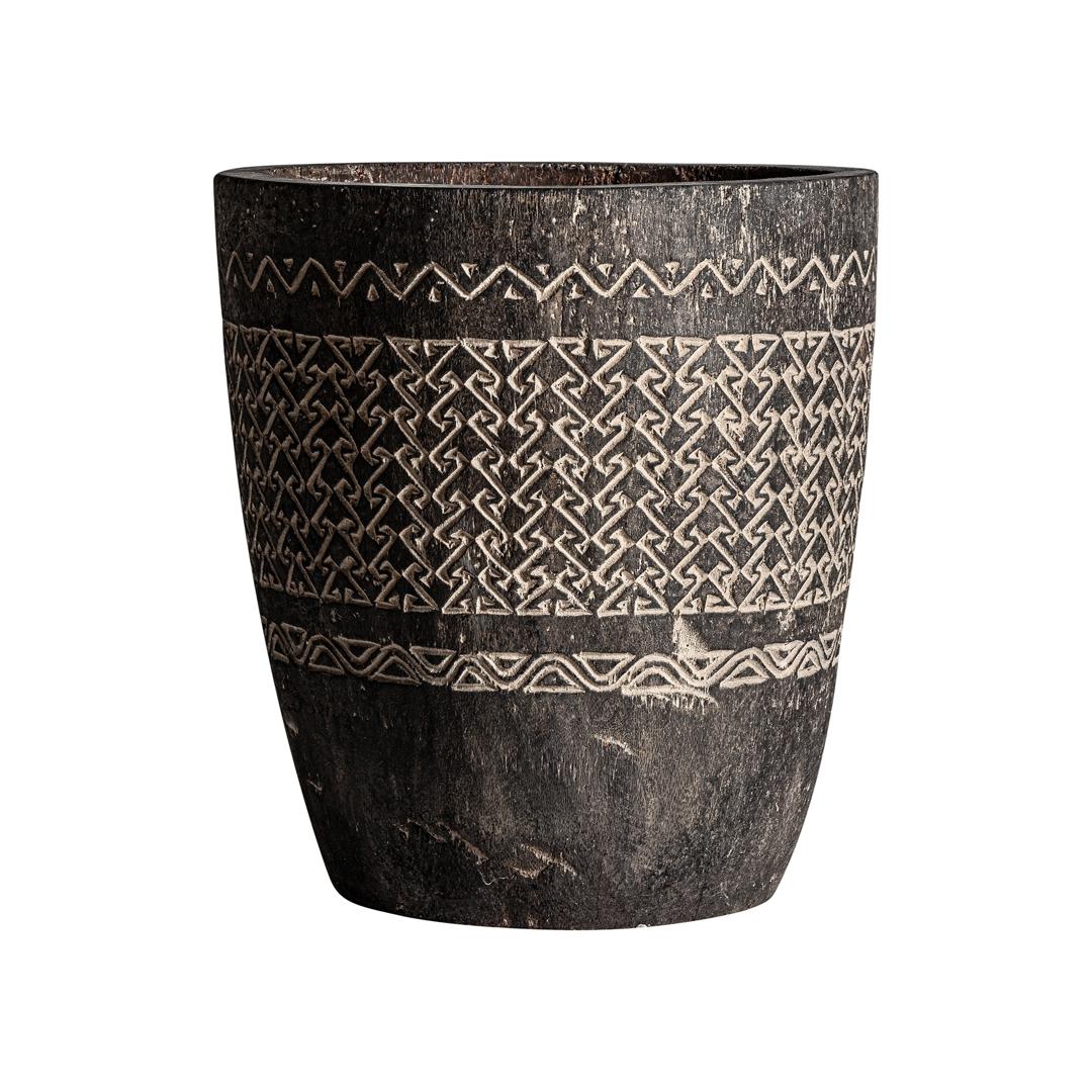 Ваза «NANTUA» в современном стиле, изготовлена из пальмового дерева в коричневых тонах с резной отделкой.