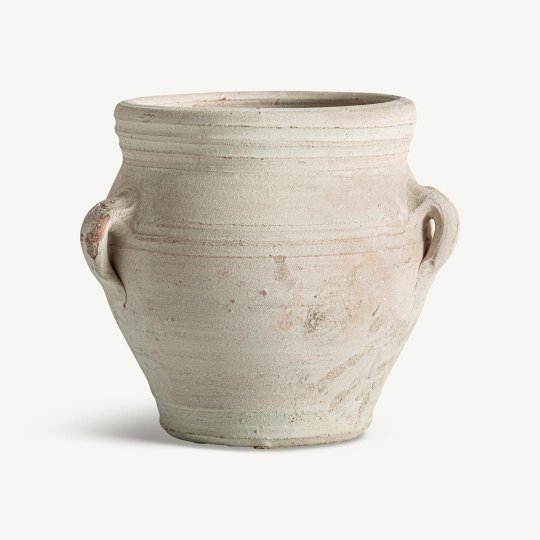 Амфора в классическом стиле, изготовленная из глины не совсем белого цвета с состаренной отделкой. Ширина: 32 см, Глубина: 32 см, Высота: 28 см
