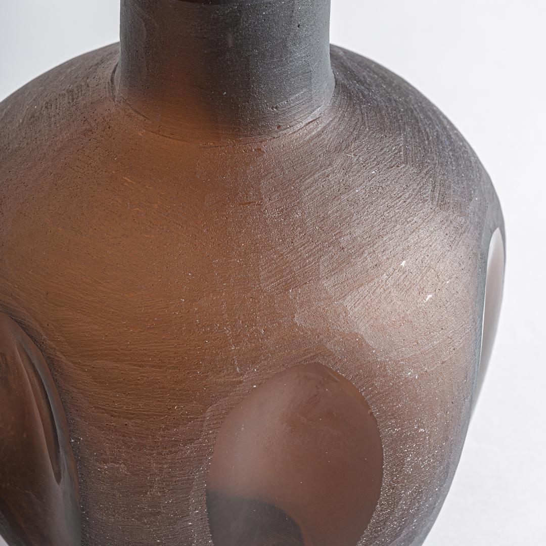 Ваза из коричневого и синего стекла. Ширина: 21 см, Глубина: 21 см, Высота: 43 см