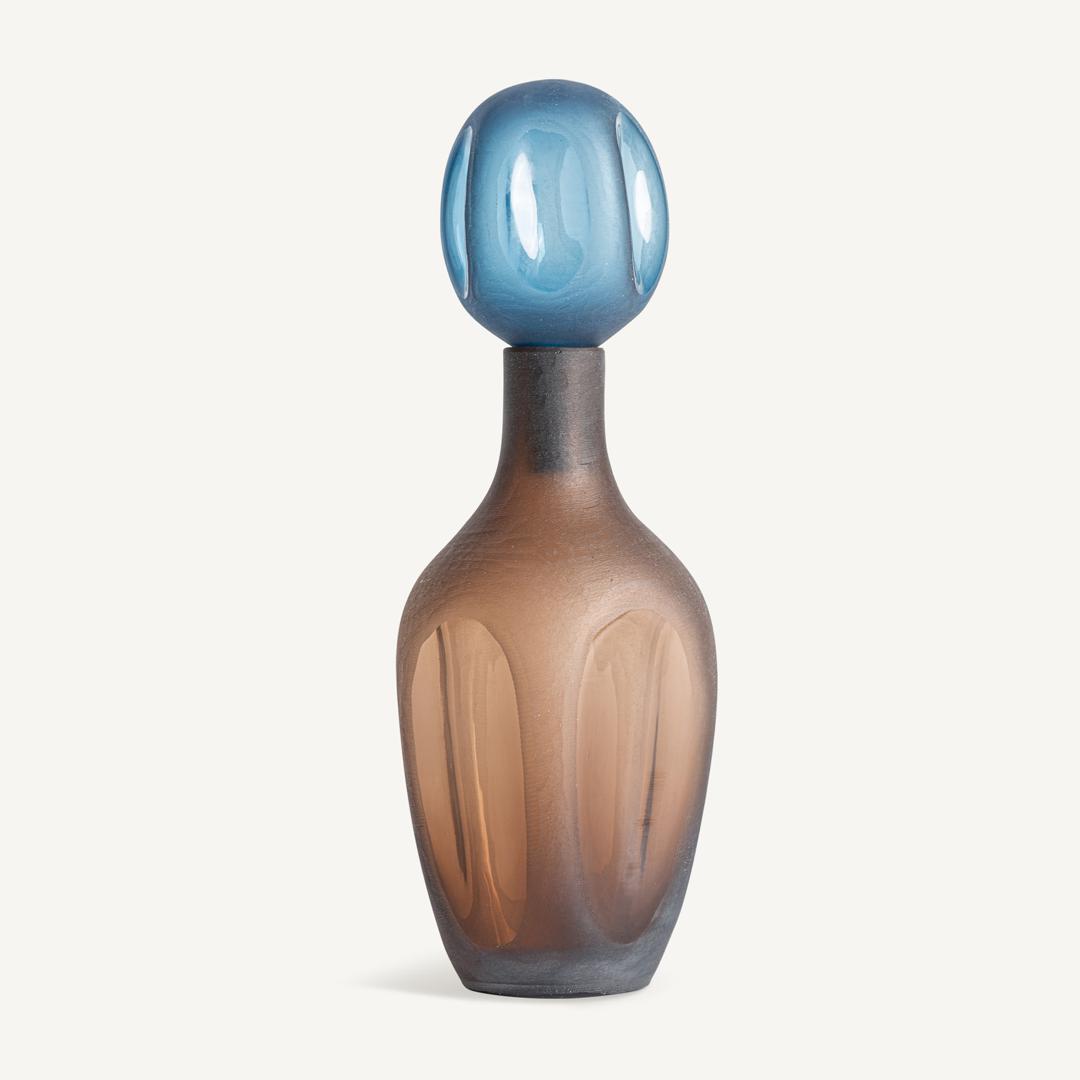 Ваза из коричневого и синего стекла. Ширина: 18 см, Глубина: 18 см, Высота: 58 см