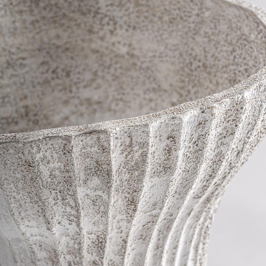 Современный центральный элемент Lumo, выполненный из кремово-белой терракоты с фактурной отделкой. Ширина: 40 см, Глубина: 35 см, Высота: 44 см